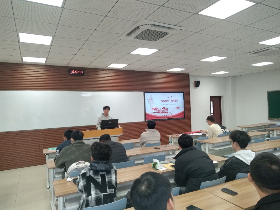 为弘扬“竢实扬华,自强不息”的交大精神,传承“严谨治学,严格要求”的优良传统,激励交大学子坚定理想信念,锻铸良好品德,练就过硬本领,支部党员胡洪林进行“竢实扬华”精神宣讲。