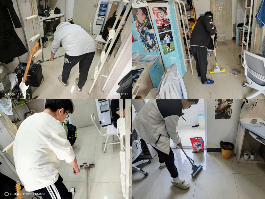 同学们通过宿舍卫生打扫、清理废旧物品等形式开展宿舍劳动。通过改善宿舍环境,保障自己的身心更加健康。大家一起动手,与室友们在劳动中建立更紧密的联系,共同创造一个良好的宿舍生活环境。寝室大扫除活动将帮助员工改善宿舍环境,促进室友之间的合作与交流,培养员工良好的生活习惯,共同打造一个良好的学习生活环境。
