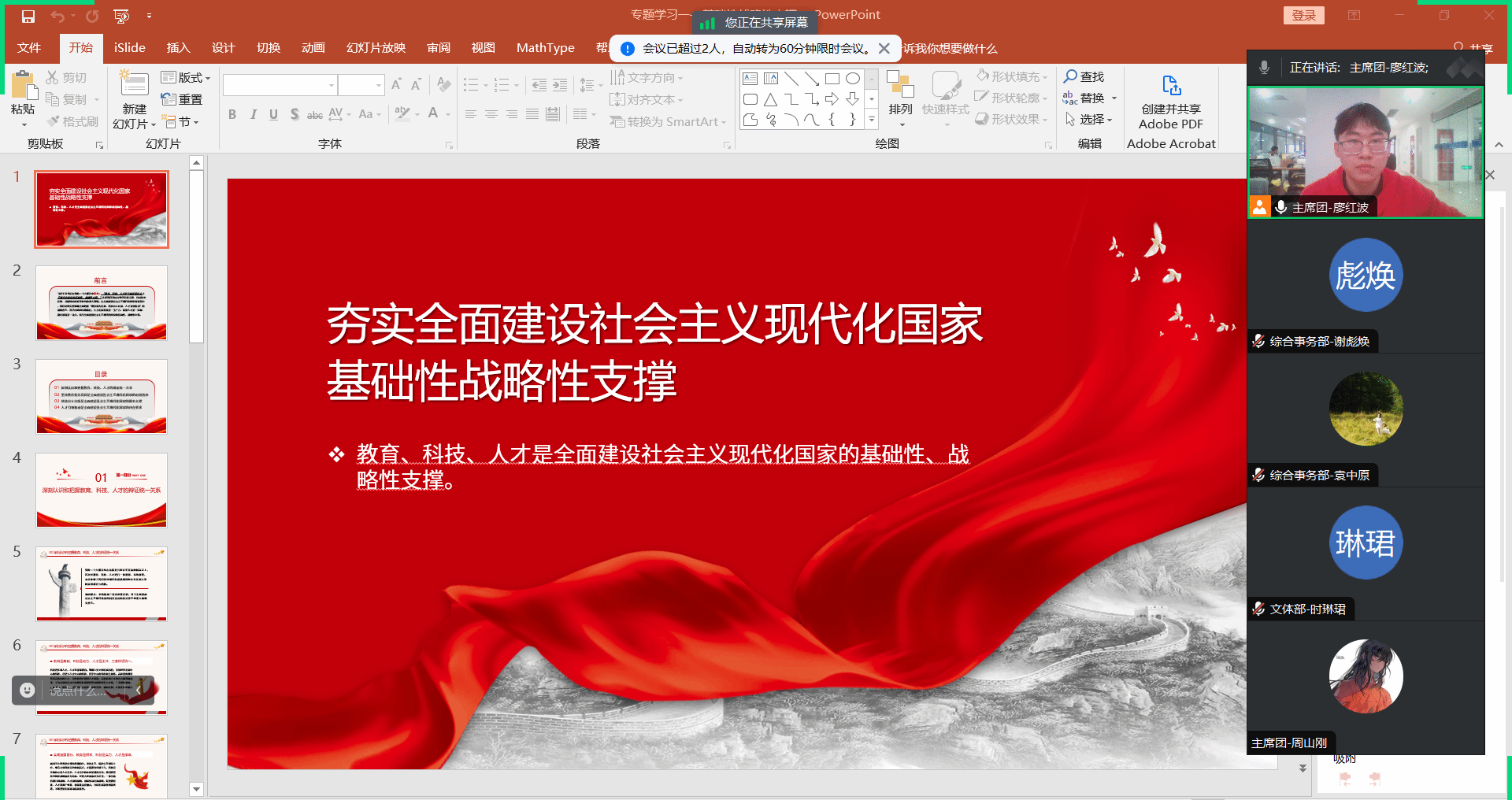 为深刻领悟教育、科技、人才是全面建设社会主义现代化国家的基础性、战略性支撑这一重要意义,2023年3月11日,伟德体育研究生会开展“夯实全面建设社会主义现代化国家基础性战略性支撑”主题学习活动, 伟德体育研究生会全体成员参加了此次活动,活动由廖红波主讲。