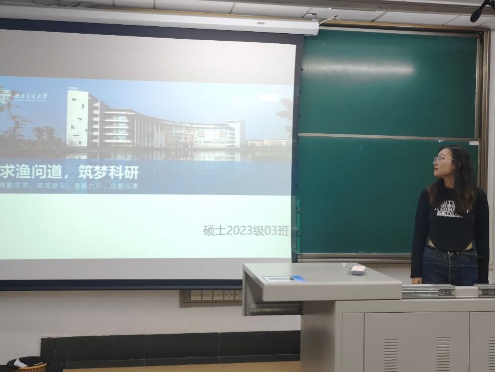 为提高同学们的科研表达能力,锻炼逻辑思维能力并培养一定的抗挫折能力,921日傍晚,硕士2023-03班的全体同学齐聚九里校区4321教室,开展以“求渔问道,筑梦科研”为主题的班级活动。