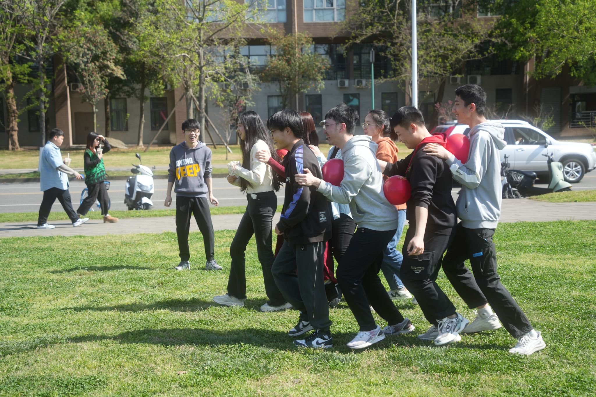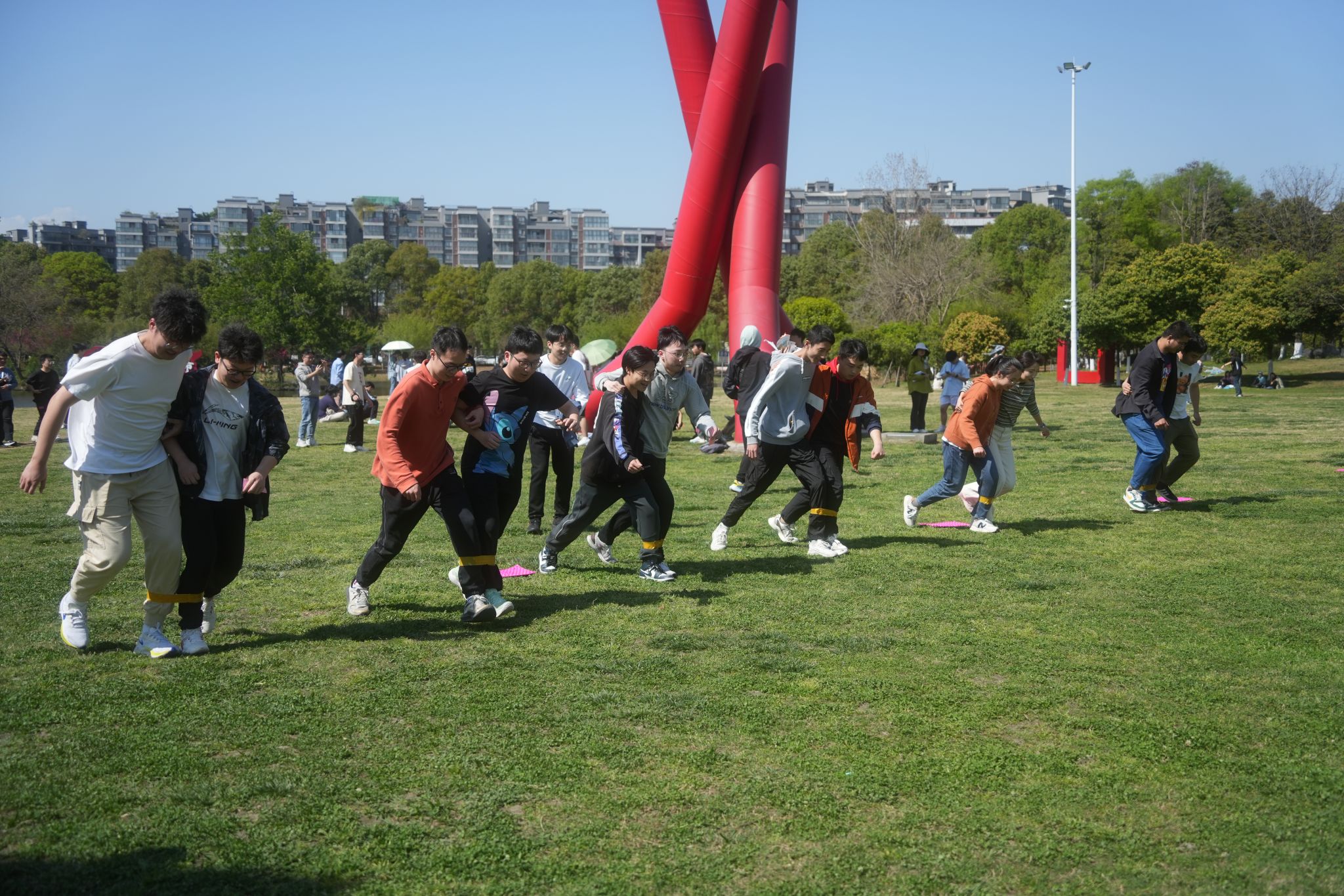 初春的下午,阳光洒满浙园草坪,同学们约上舍友和伙伴,早早地来到现场,积极参与各项趣味运动项目。此次运动会由公司2024届本科生就业小组协助举办,设有两人三足、一穿到底、竞走毛毛虫、乒乓球接力等多个项目,既注重个人拼搏的竞技性,又充满团队合作的趣味性。