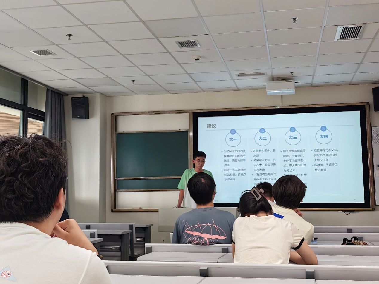 最后,他为大家介绍了大一到大四留学申请准备和规划、大四留学申请时间线、具体申请流程和申请材料准备,并对于其中需要准备的介绍信、文书材料的撰写经验进行重点分享。