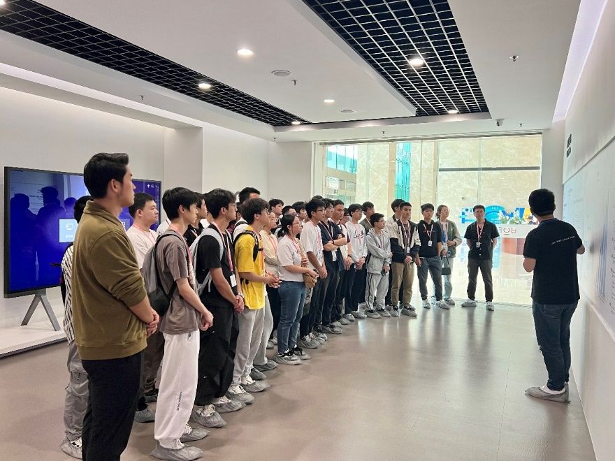 首先,工作人员为同学们讲解了京东方的发展历史和愿景,并介绍了京东方的主要业务、发展状况以及取得的相关成绩。同时也近距离接触了拼接屏、8K大屏、卷轴屏和折叠屏等半导体显示技术产品,沉浸体验了智能一体机、数字化体检等智慧物联产品,深入了解京东方“1+4+N”生态链架构在生活中的多样化应用场景。