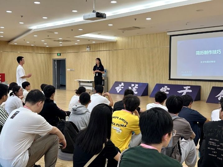 在最后的交流环节,公司HR向同学们讲解了简历制作相关的知识,并简要介绍了京东方的各个工作岗位、春招和秋招的相关情况、员工的未来发展以及实习与培训的相关内容。同学们就行业前景、个人职业生涯展望,与HR进行了全方面的交流。