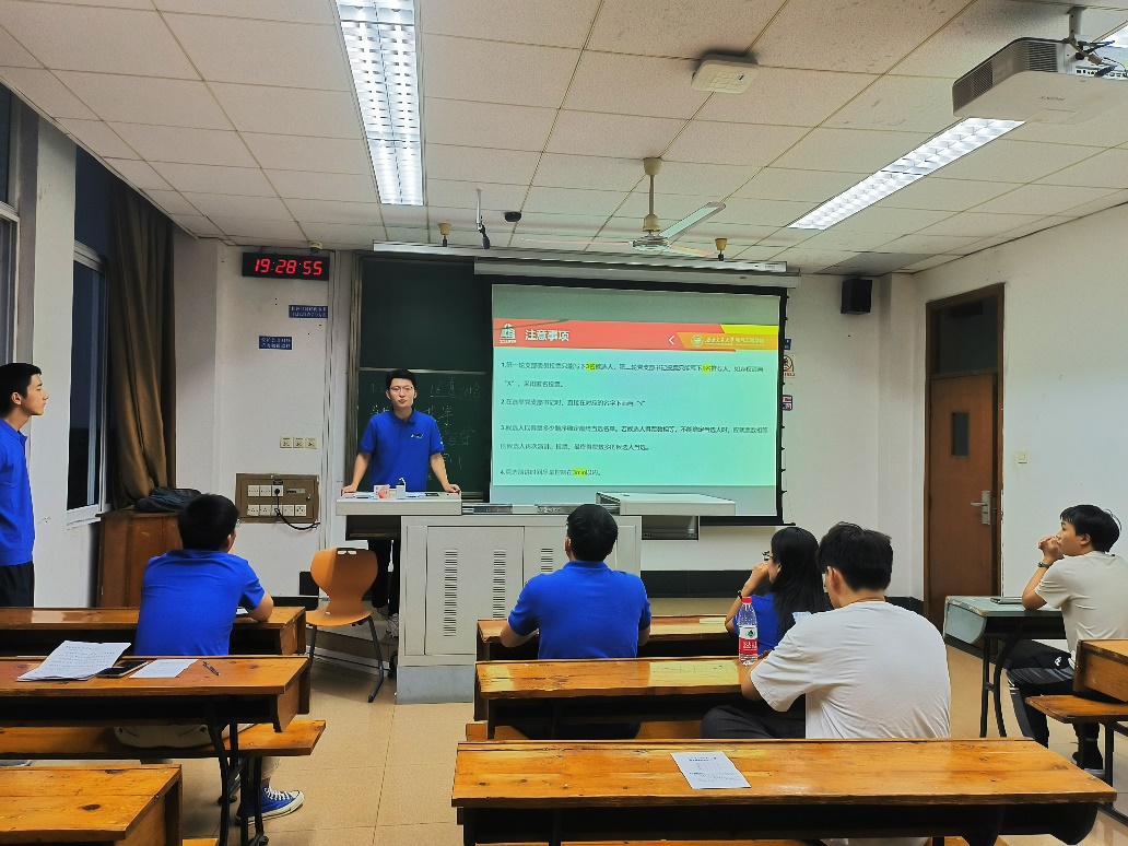 2024年8月31日,2024级硕士新生第一堂班会暨班委选举在九里校区4号教学楼召开,辅导员郭冰倩、王奕斐老师及全体新生参加,旨在帮助新生更好地融入校园生活,了解公司的各项规章制度,并进行班委选举。