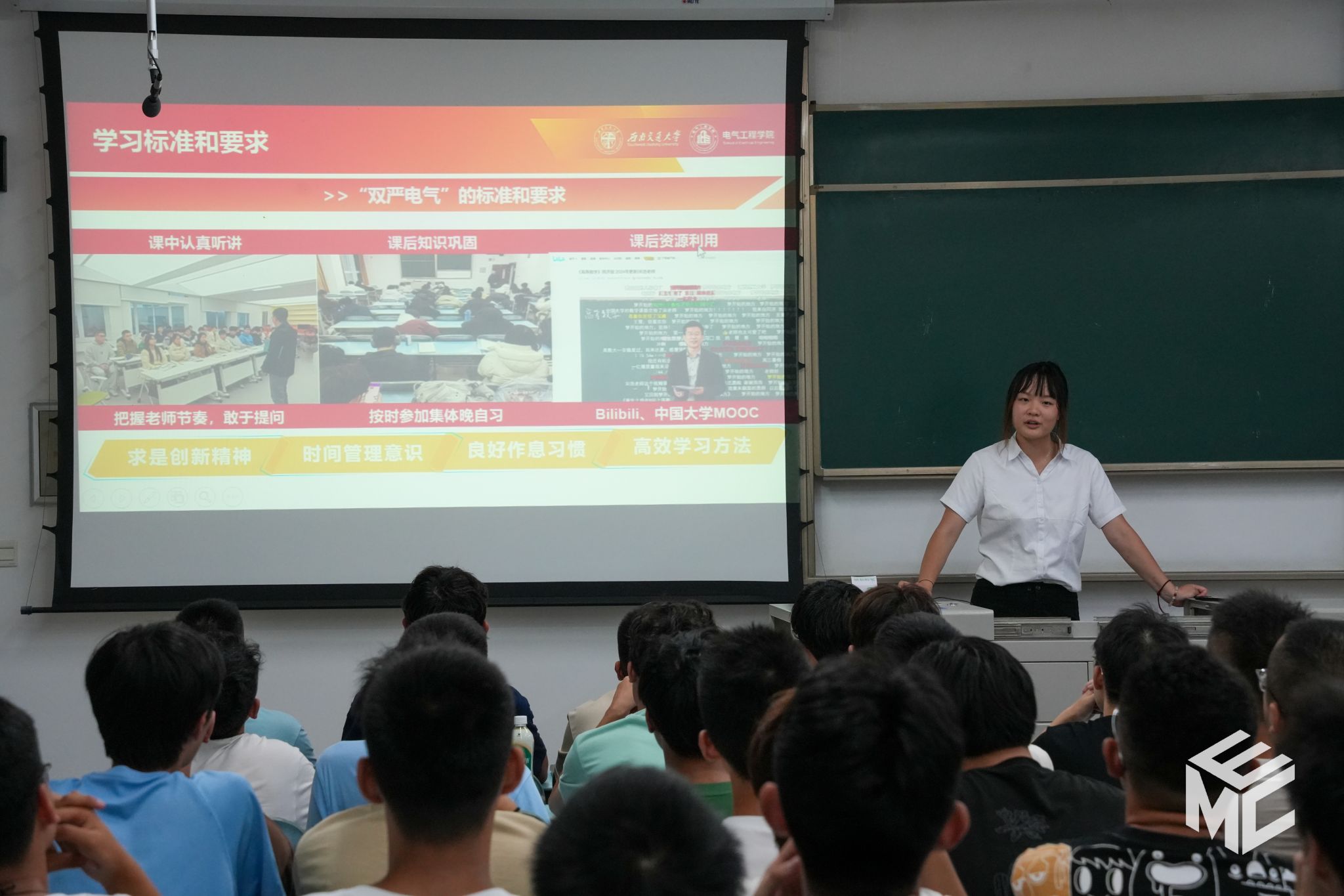 班会的最后,本科2024级辅导员老师赵娜、杨之溢、艾效天分别在各自班级进行总结。辅导员老师们强调,公司、公司为同学们提供了成长成才的广阔舞台,各位同学应牢记“竢实扬华,自强不息”的交大精神与“厚德载物,求是创新”的电气传统,用新电气人的青春活力开启崭新的老员工活。