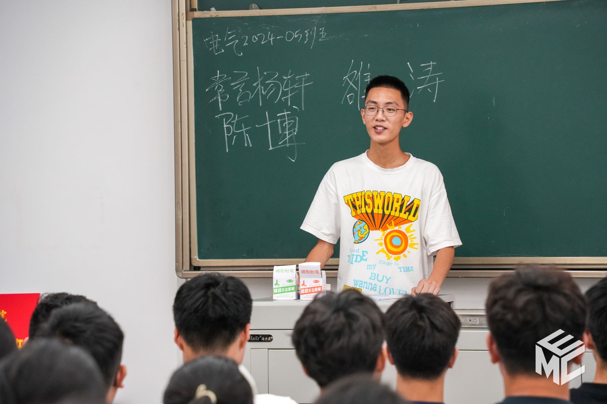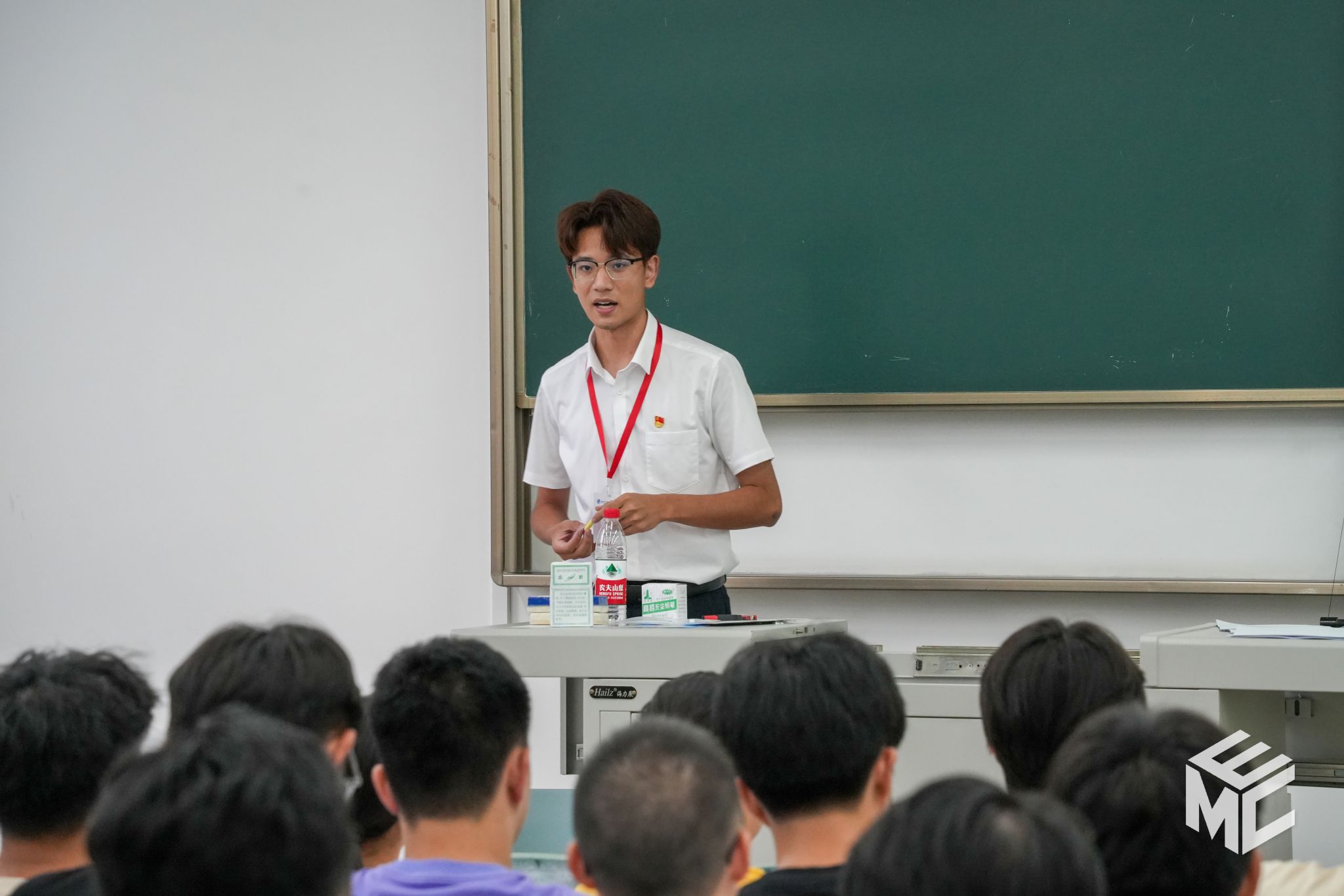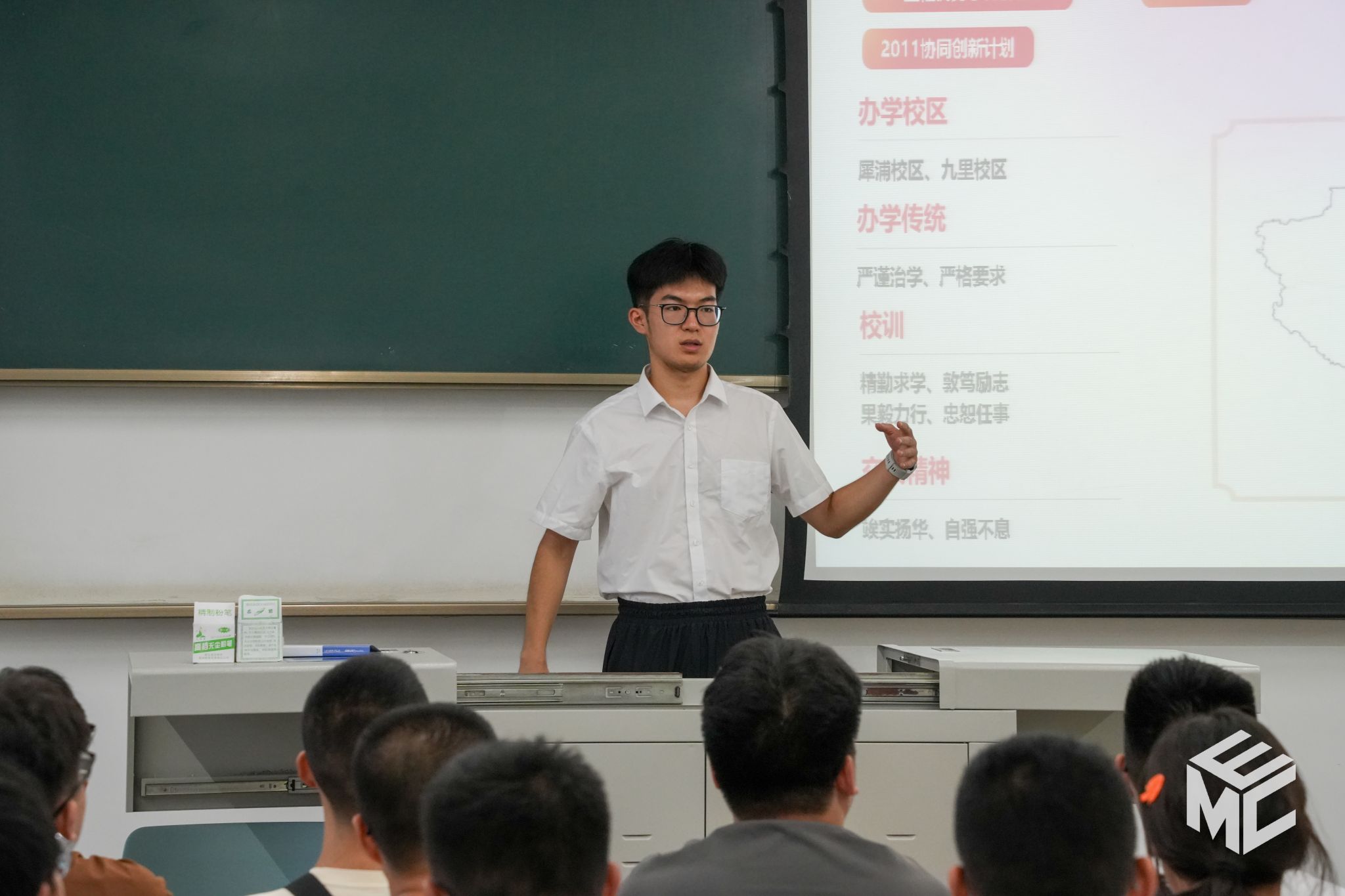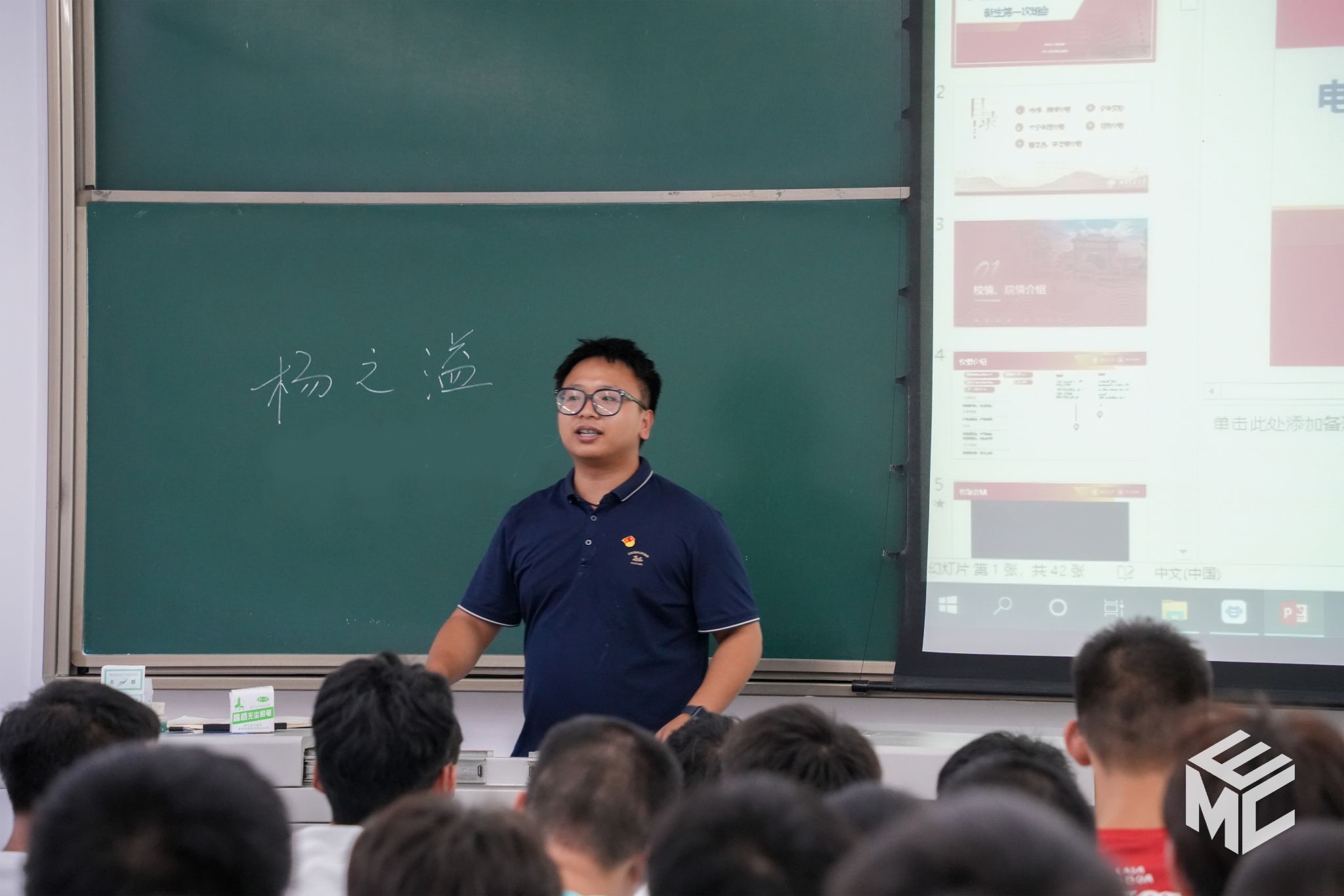 本科2024级新生在辅导员助理的带领下唱响校歌,用雄壮、嘹亮的歌声开启新生第一次班会。