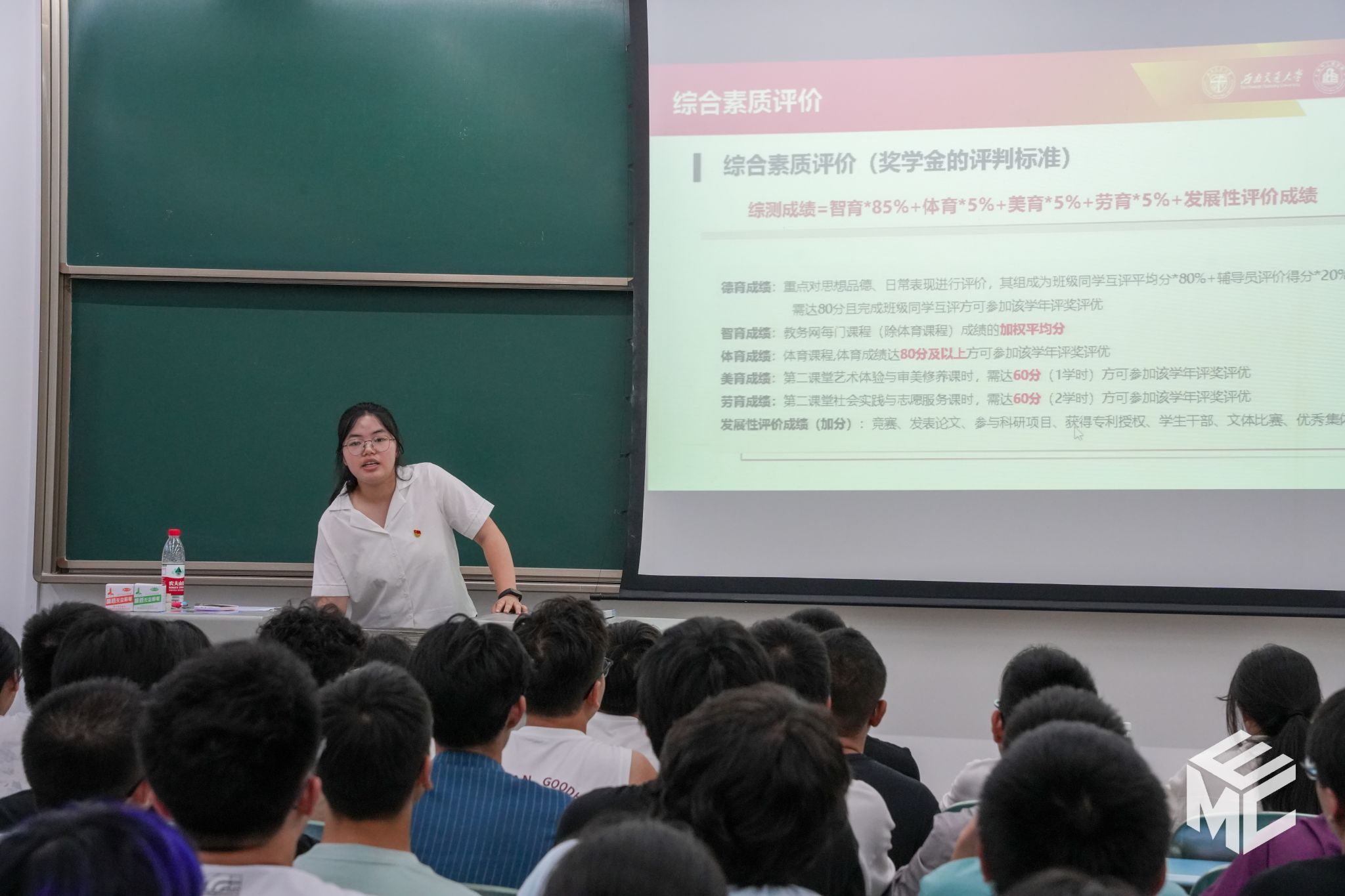 8月30日19时,伟德体育本科2024级新生第一次班会在犀浦校区2号教学楼开展。本科2024级新生辅导员赵娜、杨之溢、艾效天主持班会,辅导员助理与全体新生共同参加。本次新生班会主要分为三部分,首先是校歌教唱与校情、院情介绍,其次是大学学习、生活经验分享与政策解读,最后是新生自我介绍。