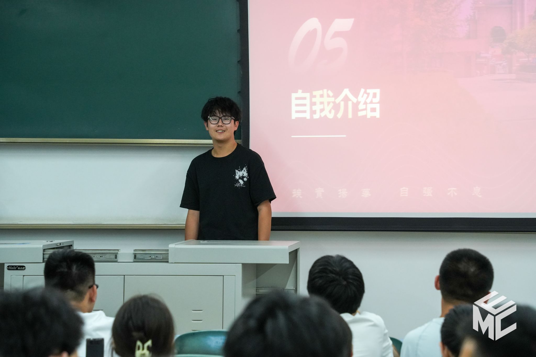 随后是新生自我介绍环节。同学们用幽默风趣的语言,生动活泼地介绍了自己的基本情况、兴趣爱好、未来展望等。虽然籍贯不同、性格各异,但热情洋溢的自我展示让同学们快速结识了新朋友,增进了全班同学对集体的认同感。