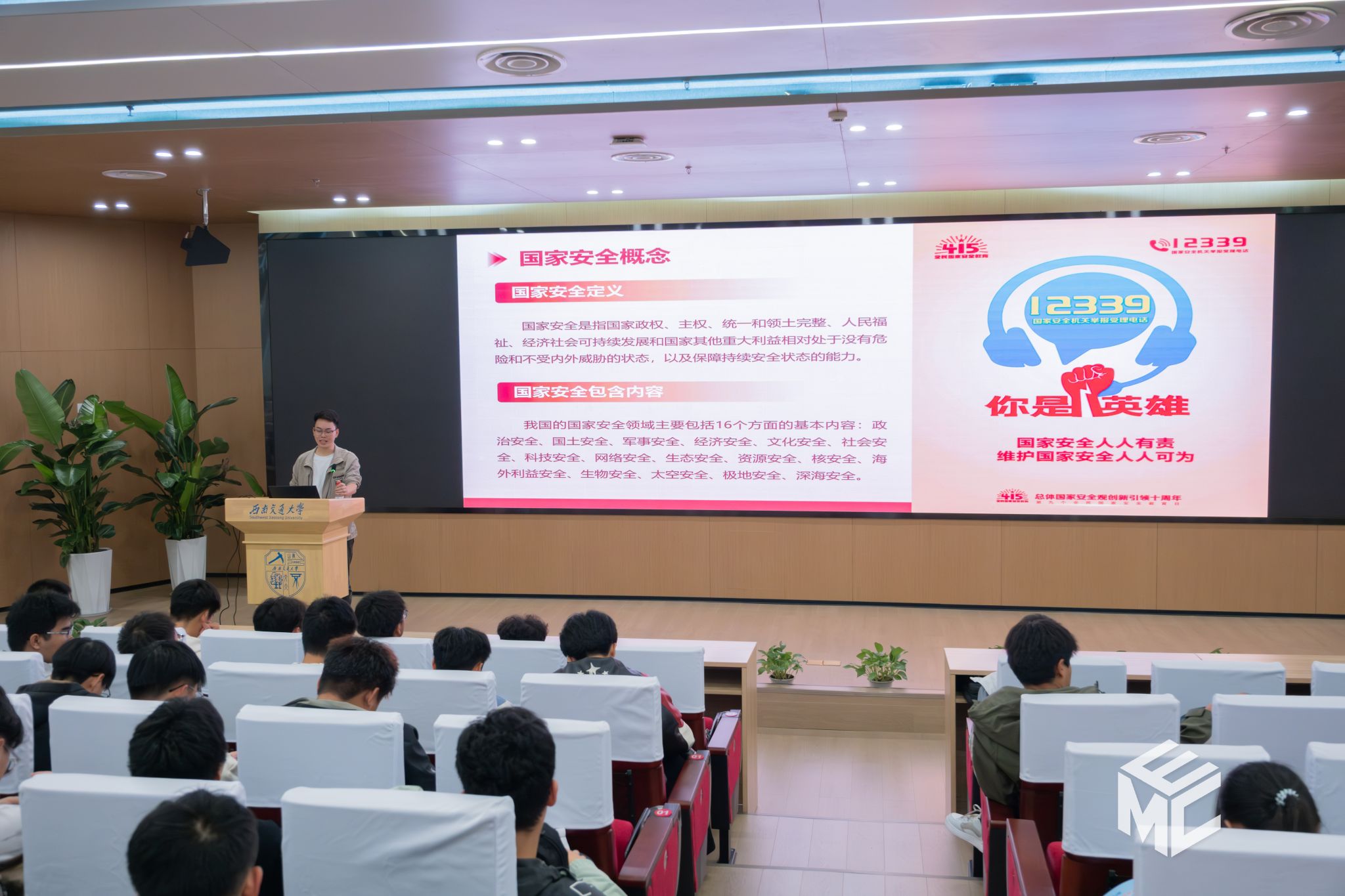 讲座伊始,宋治东老师从国家安全、保密安全、消防安全、金融安全、交通安全和人身安全六个部分进行讲解,旨在帮助新生树立正确的安全观念,提高自我保护能力,提高警惕,防骗防诈,注意网络安全及校园安全规范,在校园内绿色出行,营造和谐、有序的校园环境。