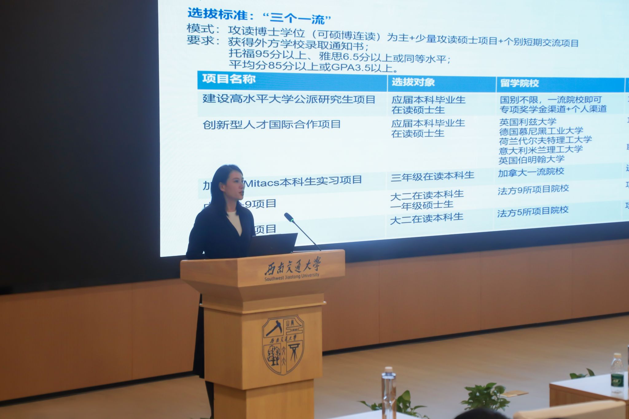 首先,廖莉副处长、杨帆主任针对新形势下员工的全球胜任力培养方式,从基本情况、政策解读、参与渠道与留学准备等方面为同学们进行了深入的剖析。老师们分析了历年的考研数据,引出伟德官方网站出国(境)交流的基本情况,并分析员工在海外留学深造过程中的特点和思维误区。老师们还重点介绍了公司国际交流的相关政策以及交流和游学项目,并向同学们讲述了出国留学的规划方法和前期准备。