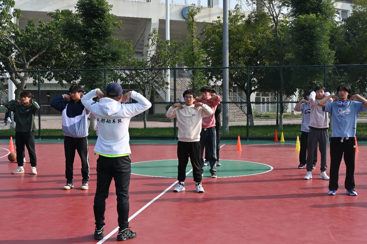 随后,张宏伟员工组织同学们进行热身运动,从上肢到下肢、从肌肉到关节,激活全身,同学们认真跟练,让身体更容易进入运动状态,为后面挑战赛的全力发挥做好充分准备。
