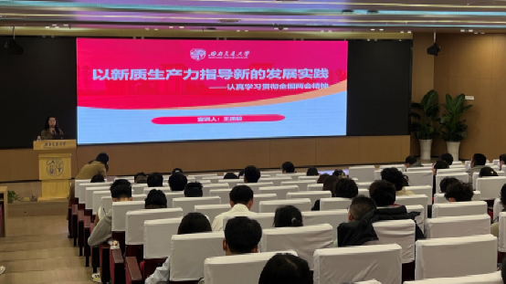 紧接着,马克思主义公司博士宣讲团的王潇毅博士以“新质生产力引领新发展实践”主题为学员们授课。王潇毅从生产力的基本概念入手,深入浅出地讲解了生产力的内涵、发展的重要性,以及新质生产力的特点和作用。她通过全面系统的讲解,引导学员们深刻领悟新质生产力在当代社会发展进程中的关键地位与紧迫性,启发他们深入思考如何将这一前沿理念有机融入未来的实践探索中,为社会的进步与发展贡献青春智慧与力量。
