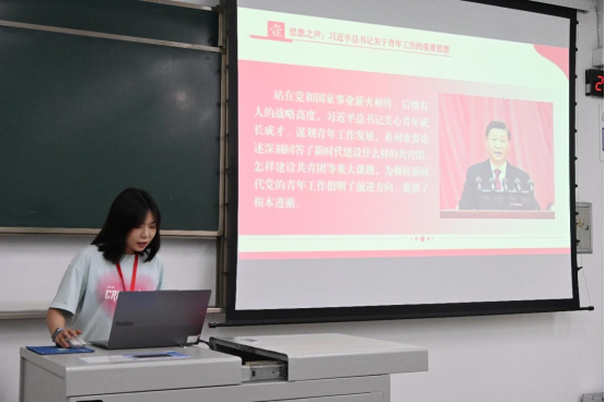 活动伊始,综合部副部长陈思妍着重强调了青年在党和国家事业发展中的关键作用。以习近平总书记对青年工作的重要指示为切入点指出,青年作为国家的未来和民族的希望,肩负着实现中华民族伟大复兴的历史重任。结合《深入学习习近平总书记关于青年工作的重要思想》中的内容,详细阐述了新时代好青年应具备的“有理想”特质,鼓励同学们坚定共产主义远大理想和中国特色社会主义共同理想,用习近平新时代中国特色社会主义思想武装头脑。通过列举众多优秀青年投身国家建设的实例,让同学们深刻认识到拥有坚定理想信念对个人成长和国家发展的重大意义。引导大家将个人理想融入国家和民族的事业中,在新时代的浪潮中找准自身定位,为实现强国目标贡献力量。