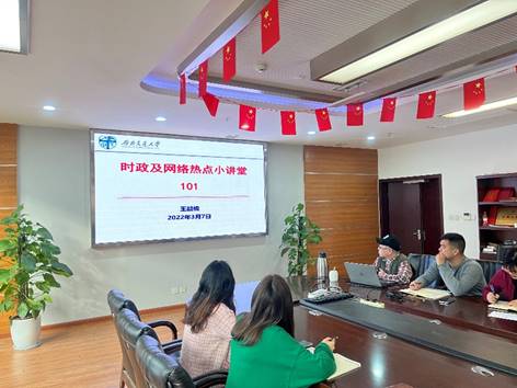 王喆桅老师从北京冬奥会的成功举办引入课程,首先讲解了后疫情时代中国道路优势的体现。接下来,他对全国两会和政府工作报告,新冠疫情与国际合作,俄乌冲突等国内外时事热点进行了依次分析和讲解。最后,王喆桅希望全体辅导员老师们对类似于“殖人”的思想提高警惕意识,主动深入员工的网络社交,引导员工相信政府、拒绝双标、坚持正义、不断反思,切实做好网络思想政治教育。