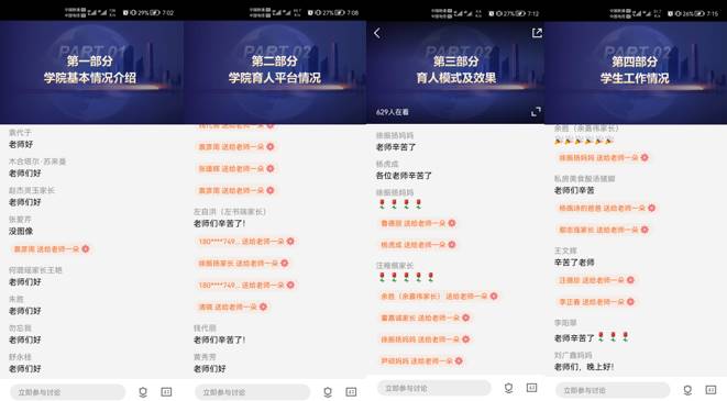 为了加强家校联系,做好家校协同育人工作,推进“家长进公司育人网络”,让每位家长了解孩子老员工活的基本情况,让每位员工健康快乐地学习与成长,公司于2021年9月3日19时通过线上会议的形式,召开了本科2021级新生家长会。公司经理陈维荣,党委书记罗乾超,党委副书记谢力,2021级新生辅导员张异、谢东旭、刘育阳、王晋瑄及全体新生家长参加会议,本次家长会由谢力主持。
