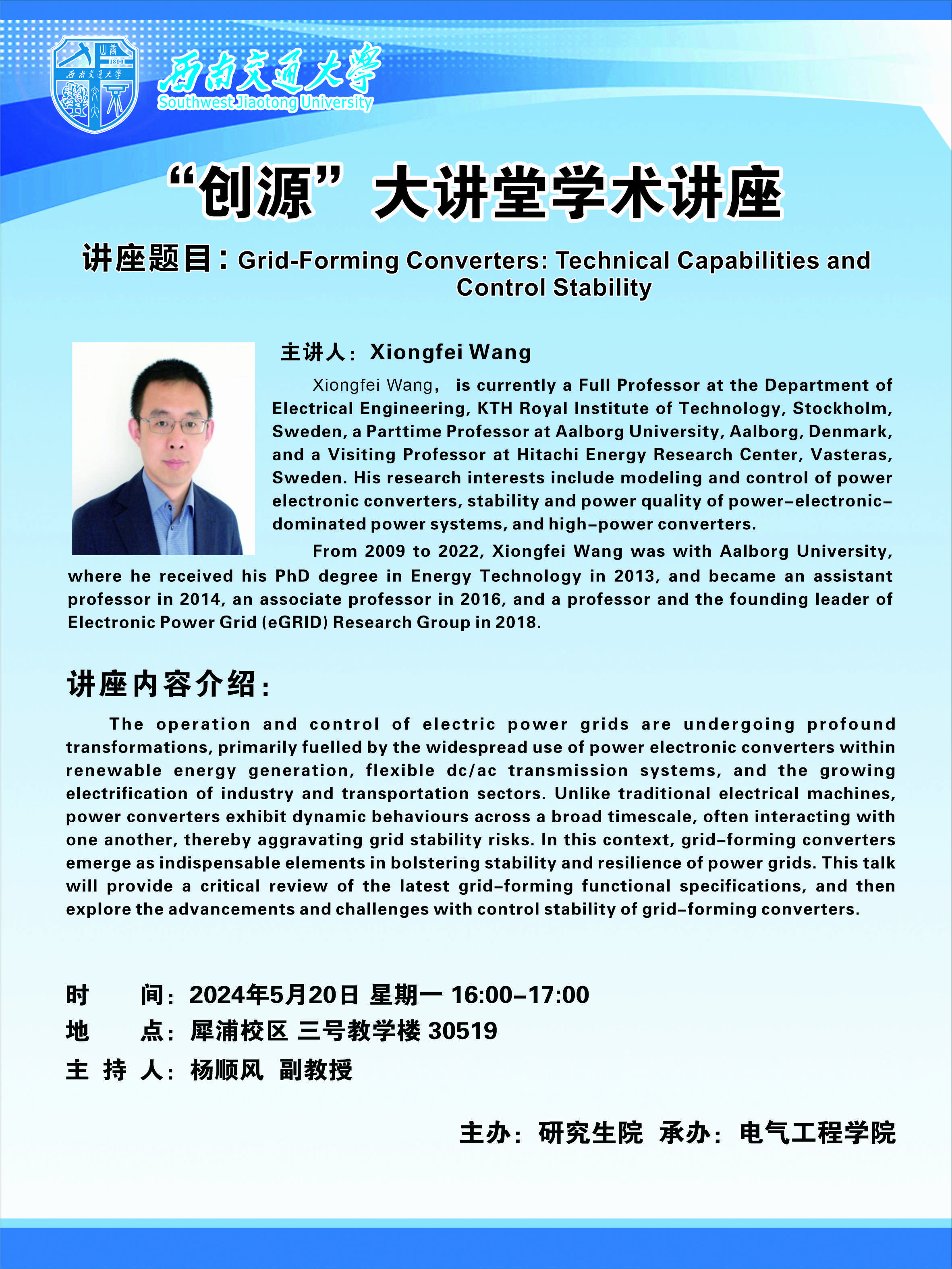 5月20日“创源”大讲堂:Grid-Forming Converters: Technical Capabilities and Control Stability