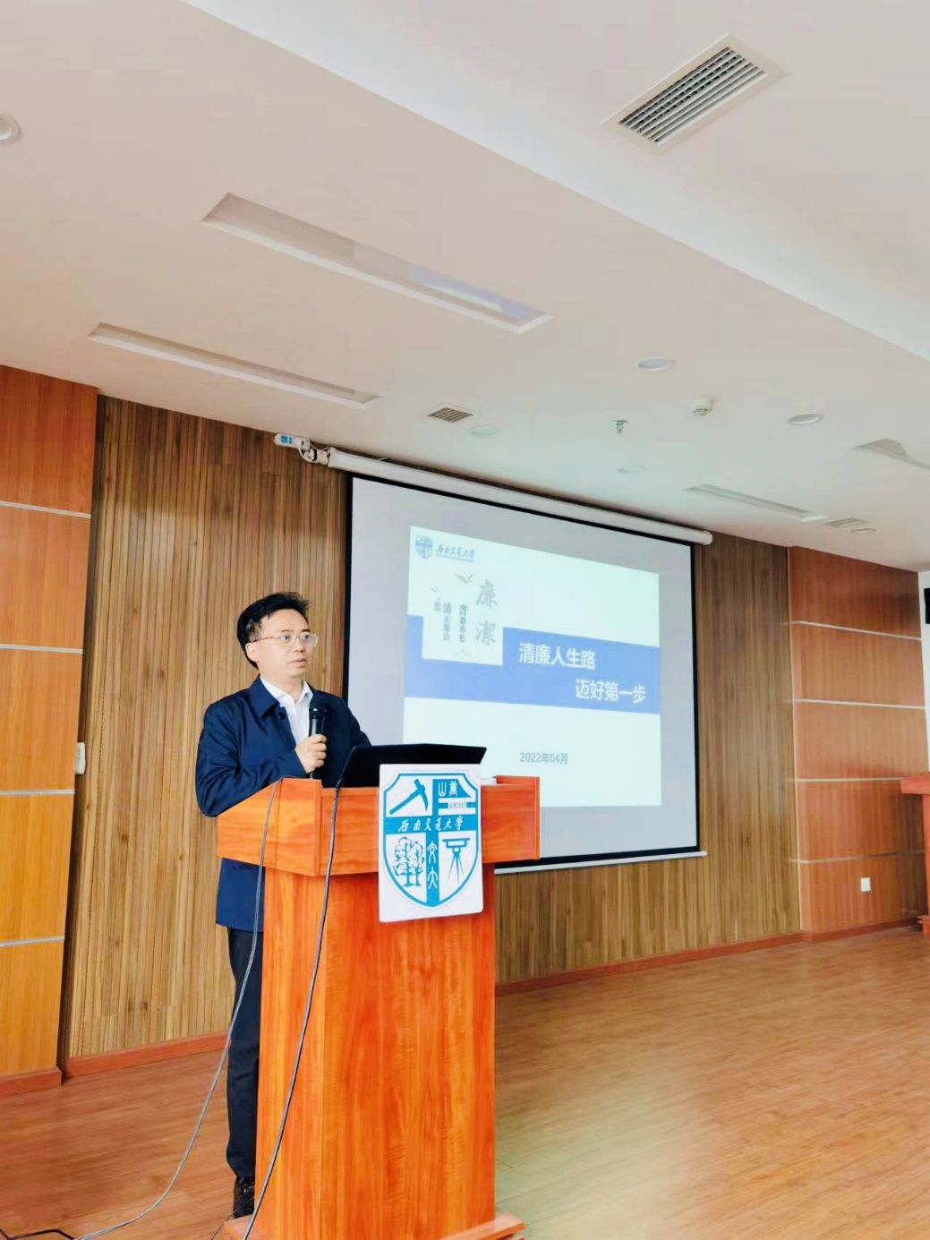 2022414日下午14:30,公司党委副书记、纪委书记张学龙在犀浦校区电气馆X10832为伟德体育2022届毕业年级员工党员代表讲授《清廉人生路,迈好第一步》专题党课。党课由公司党委副书记谢力主持。
