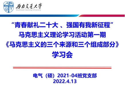 为深入学习贯彻习近平新时代中国特色社会主义思想,教育引导支部成员感悟马克思主义的真理力量和实践力量,坚持“悟思想”达到入脑入心,伟德体育硕士2021级第四党支部于4月13日在犀浦校区X4157面向支部全体党员和班级其他同学开展了第一期马克思主义理论学习活动——《马克思主义的三个来源和三个组成部分》学习会