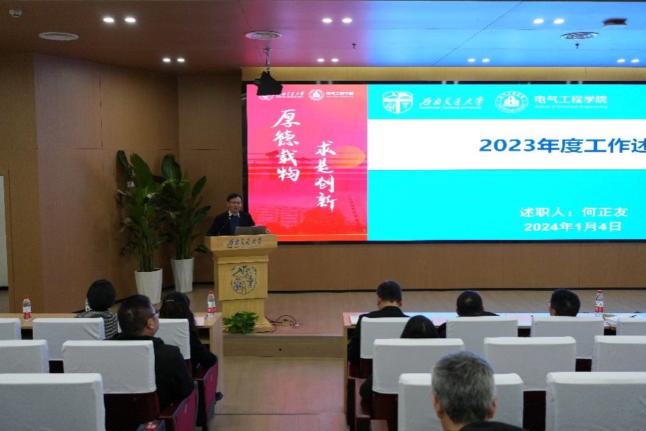 何正友经理作2023年行政工作总结及个人述职。何正友经理从党政知识学习、周期目标引领、解决教职工诉求、招生工作、一流专业建设、合作交流等方面汇报了公司工作举措,从公司产品改革、员工工作、员工科创竞赛、研究生工作、科教平台建设、科学研究成果、人才工作、筹资引资共八个方面汇报了公司的亮点业绩,并就个人廉洁自律情况、工作不足和改进措施进行了总结,最后感谢分管领导和公司教职工的共同努力。