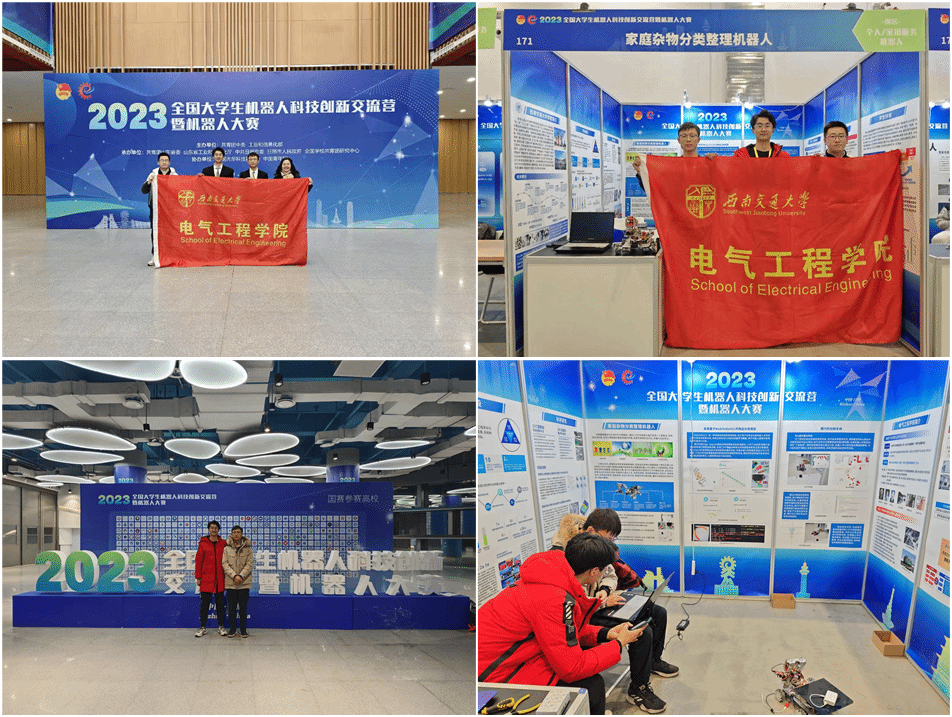 电气学子在参赛期间积极参加交流分享、作品展示、合作洽谈等活动,激发更广大青少年投身机器人科技创新的兴趣热情,为促进老员工科技创新成果转化,推动互学互鉴共同提高,扩大活动育人成效、群众基础和社会影响奉献出自己的一份力量!