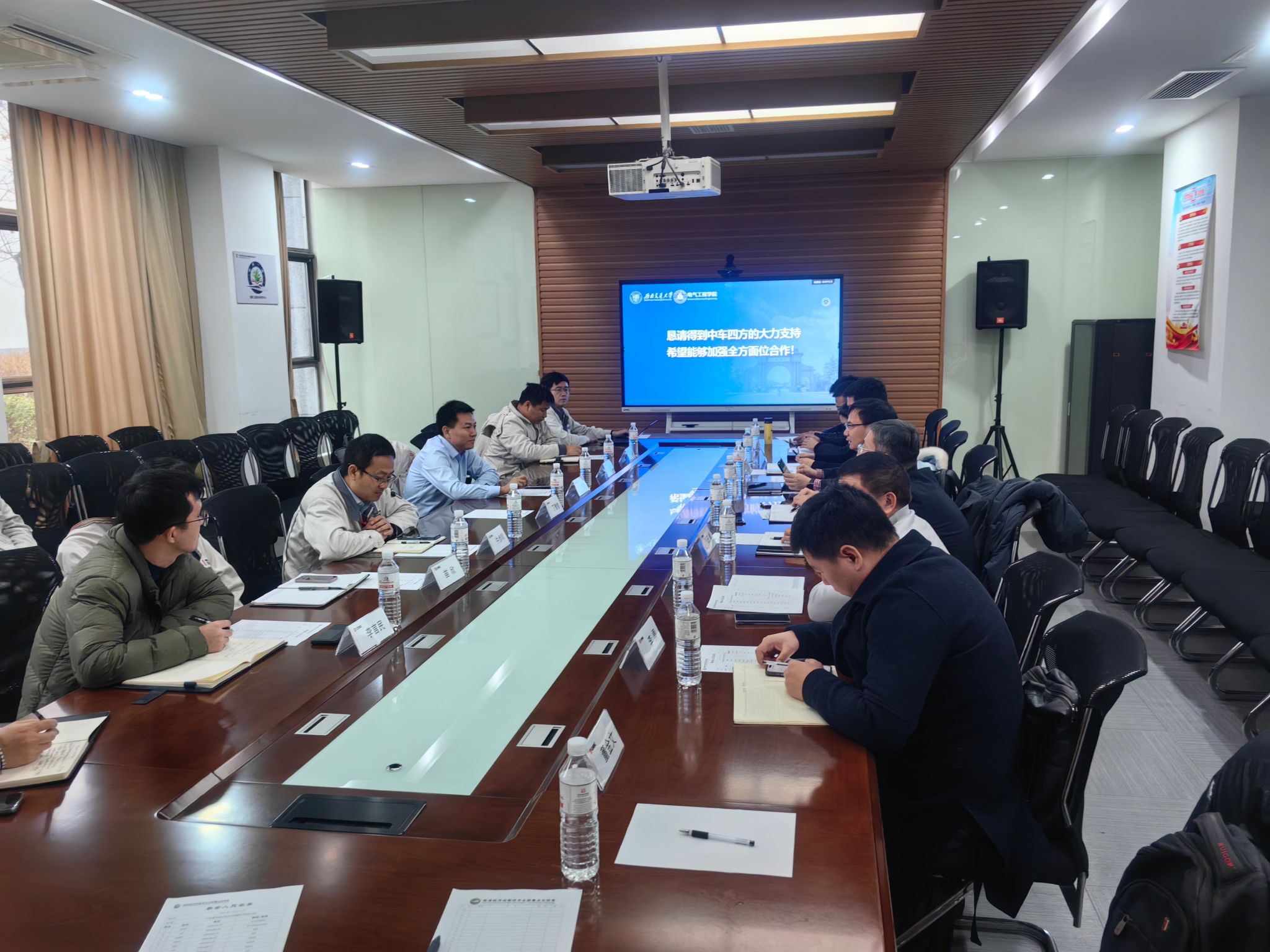 公司经理何正友教授从公司概括、人才培养、科学研究、平台建设等方面介绍了公司的情况。张昆仑教授、王滢副教授分别对电磁悬浮与线性驱动创新团队的研究工作进行了汇报,并对团队成员与最新研究成果等情况进行了介绍。麦瑞坤教授对无线供电技术的最新研究成果进行了汇报。
