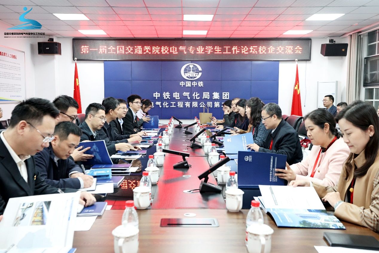 主题交流结束后,参会代表还来到西南交大机车博物园参观交通强国科学家精神教育基地。随后前往中国中铁电气化局成渝中线成都枢纽项目部实地参观,了解了企业文化、智能建造及项目开展情况,并开展校企交流座谈会。座谈会上,中国中铁电气化局成渝中线成都枢纽项目党工委书记窦俊辉表示,希望通过本次员工工作论坛为加强校企合作交流、培养专业人才提供更完善的交流平台。参会代表共同观看了中铁电气化局添翼文化宣传片、智能建造宣传片,并就校企双方在科研成果转化、人才培养等方面的合作进行交流。