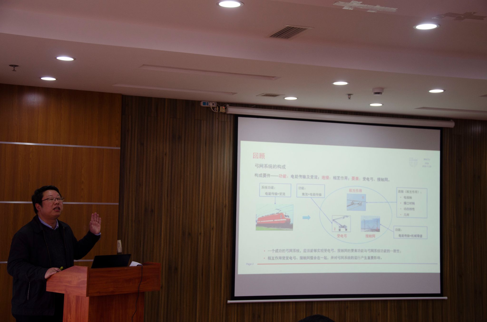 吴积钦教授以《弓网电接触》示范课为例,与在座教师分享了先进教学理念和教学技巧。例如,利用有趣的语言调节员工上课的气氛、联系生活巧妙解答疑难问题、图文结合提出问题、利用问题引出挑战性课题,这些都是十分巧妙的办法。吴积钦教授强调,青年教师应学会换位思考,充分考虑员工感受,适时提出思政教育。他从人才的问题引出人在学习中如何进步、人的目的性和谋生利益、知识与文化的区别等思考,进一步提出让人理解、为员工考虑、认知与思维的重要性。在最后的结语中提出有教无类、因材施教、教学相长等要点。