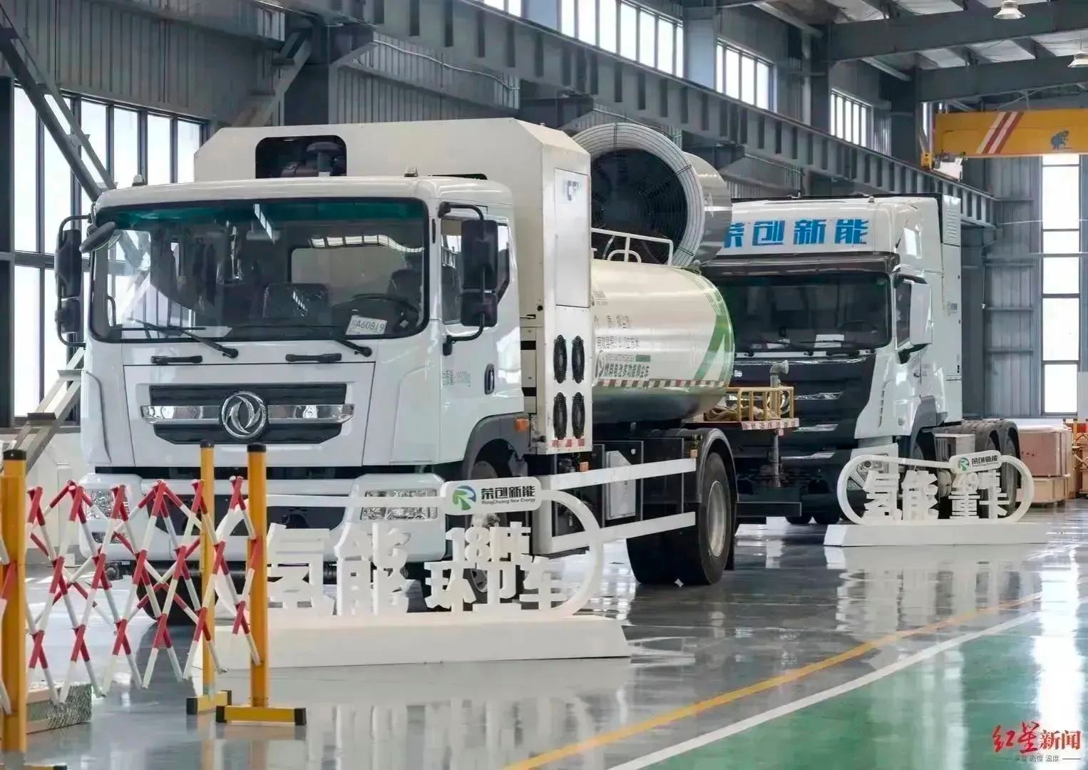 ▲荣创新能研制的氢能源动力环卫车