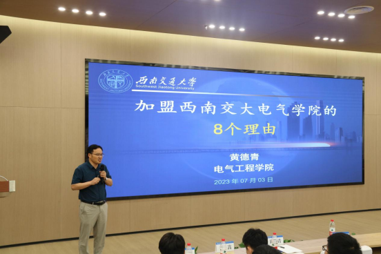 经理助理黄德青教授作报告。黄德青教授首先向同学们介绍了自己的求学历程,分享了自己的人生格言。随后阐述了选择伟德体育的八个理由,希望同学们来到伟德体育攻读研究生。最后,黄德青教授寄语同学们能够万事如愿,当遇到挫折时,一定要坚强勇敢。