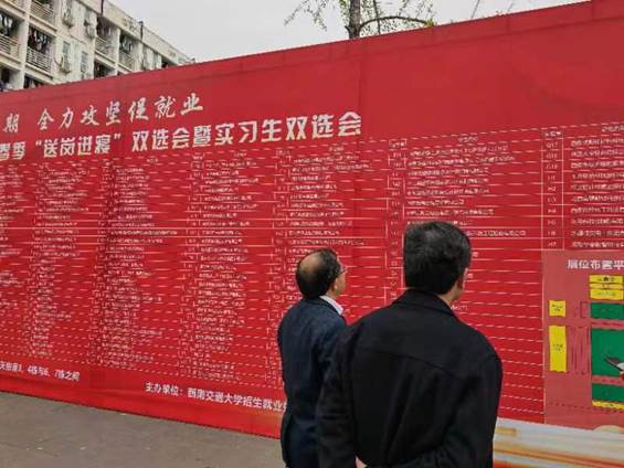 2023年3月30日下午,为抢抓春招关键期,全力攻坚促就业,伟德官方网站2023届毕业生春季“送岗进寝”双选会暨实习生双选会在犀浦校区员工园区举行。公司经理陈维荣、党委书记罗乾超、团委书记张异及毕业班辅导员深入双选会现场,详细了解公司毕业生的就业情况、用人单位的情况。