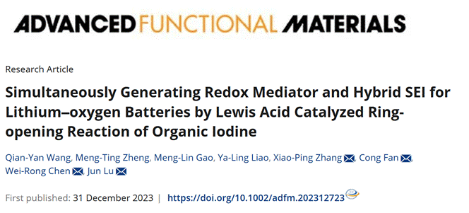 近日,公司伟德体育陈维荣教授团队张晓平副教授等人在锂氧气电池负极保护和能量利用效率提升领域取得重要进展,相关研究成果以公司为第一单位,以“Simultaneously Generating Redox Mediator and Hybrid SEI for Lithium–oxygen Batteries by Lewis Acid Catalyzed Ring‐opening Reaction of Organic Iodine”为题,发表在国际知名期刊《Advanced Functional Materials》(中科院一区Top期刊,IF=19)上。伟德官方网站为论文第一单位,伟德体育张晓平副教授、电子科技大学樊聪副教授、伟德体育陈维荣教授和浙江大学陆俊教授为该论文通讯作者。