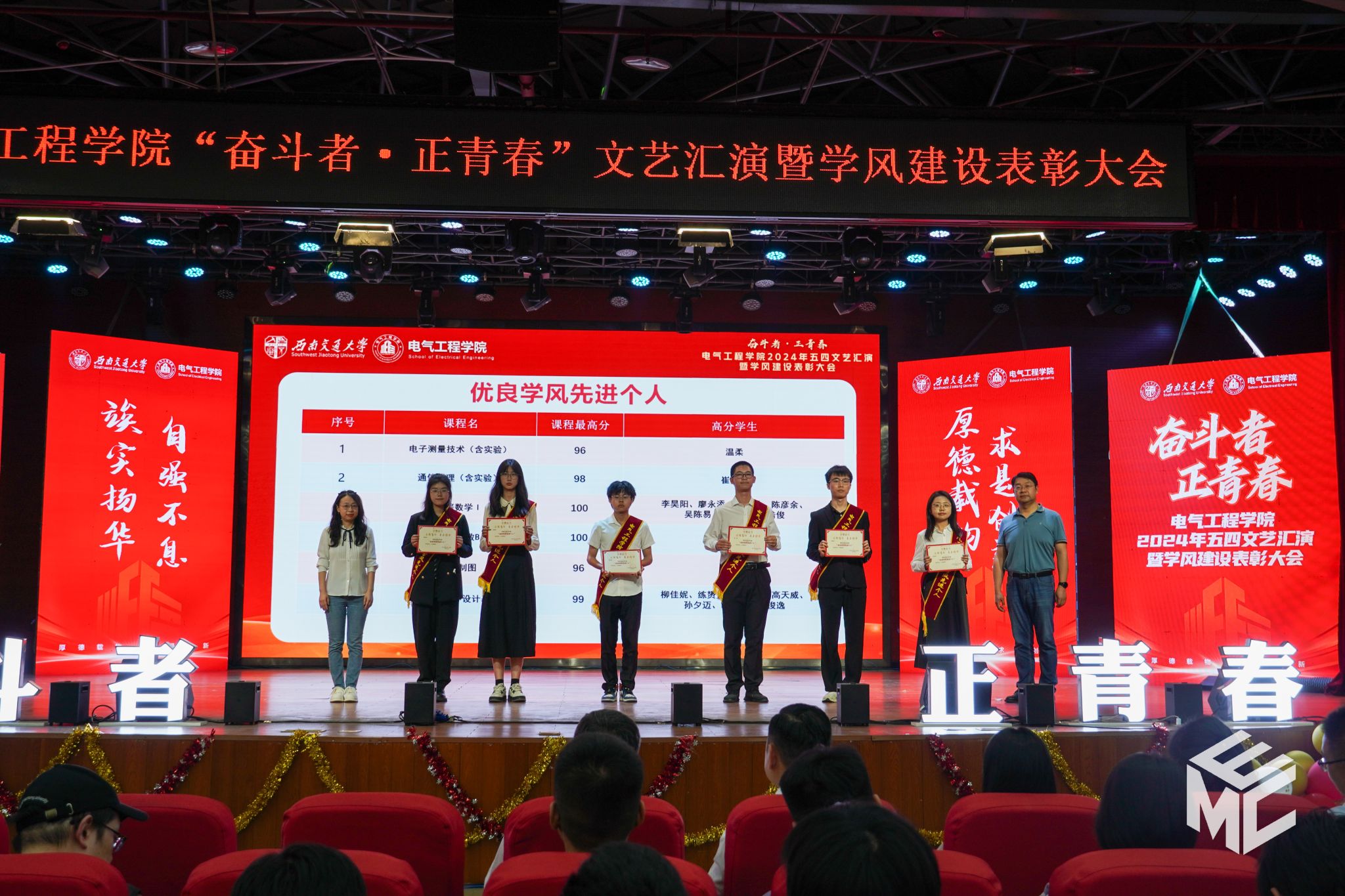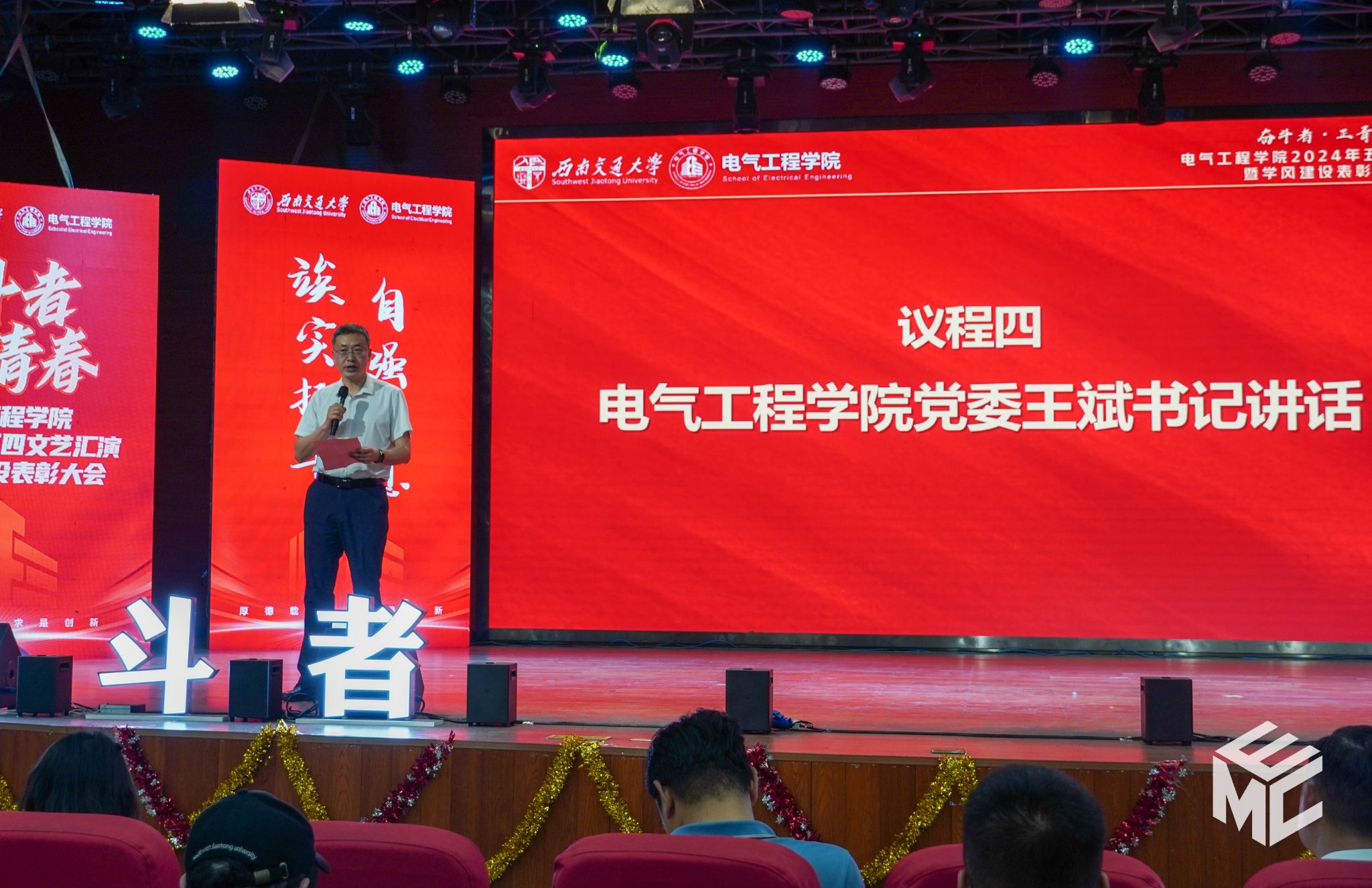 2024年4月27日晚,伟德体育“奋斗者•正青春”2024年五四文艺汇演暨学风建设表彰大会在犀浦校区老员工活动中心如期举行。伟德官方网站团委书记武俊,党委员工工作部副部长邢晓鹏,教务处副处长刘鎏,人才招聘处对外联络科科长董鹏飞,公司党委书记王斌,副经理解绍锋,公司党委副书记谢力、王轶,信承瑞技术有限公司总裁金良赞,信承瑞周钗妹千万光彩基金会理事长林婷婷等出席晚会。2023级班导师及全体辅导员与同学们齐聚一堂,共同参加本次文艺汇演暨表彰大会。