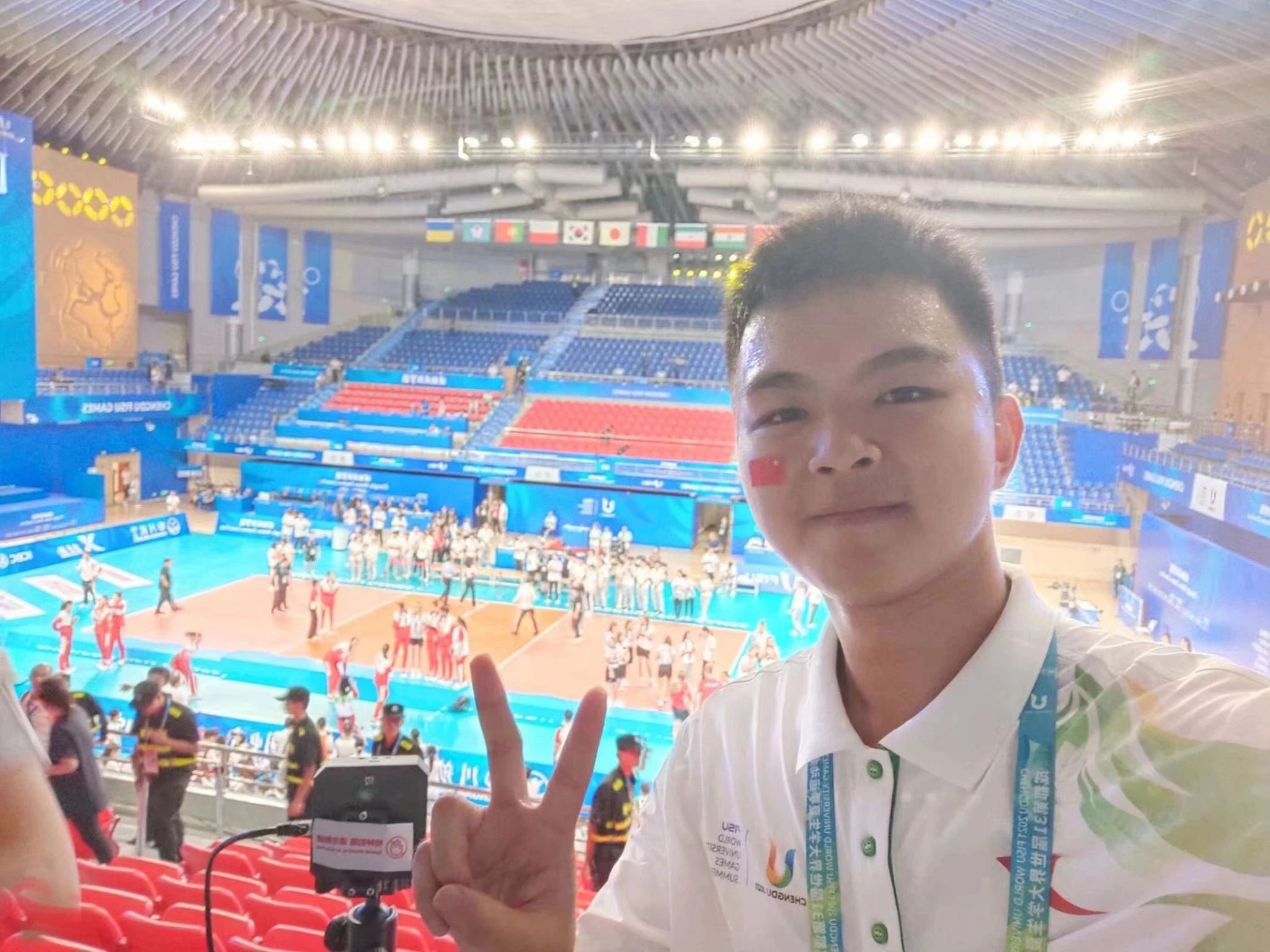作为一名志愿者,谈浩澜积极参与各项志愿服务活动,践行“奉献、友爱、互助,进步”的志愿精神,志愿四川时长达647.5小时,获评“伟德官方网站五星级志愿者”,曾任电气青协会长。2023年他参与了成都大运会志愿服务,作为志愿者和场馆内坐席区组长,不断提升服务质量,提高团队凝聚力,展现交大“小青椒”的蓬勃精神力;作为成都大运会交大排球场馆中心临时党支部书记,他发挥党员先锋模范作用,在志愿者誓师大会上发言获得央视报道,被评为第一批成都大运会“优秀个人”。