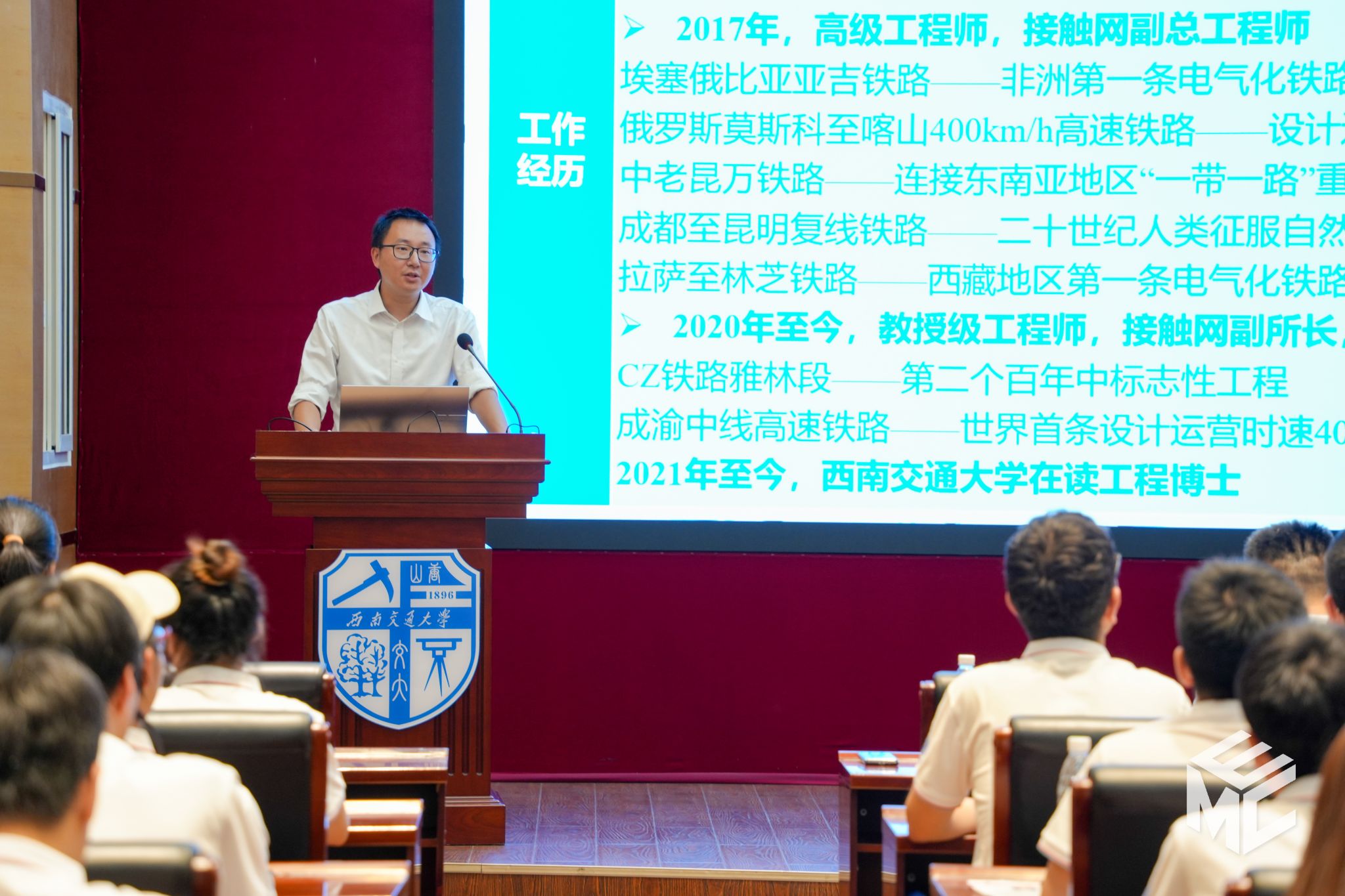员工代表中铁二局正高级工程师陈可分享了自己都工作经验与取得的工作成果,并提醒同学们要坚持努力,做好选择,才能不负韶华,用青春力量描绘未来美好蓝图。