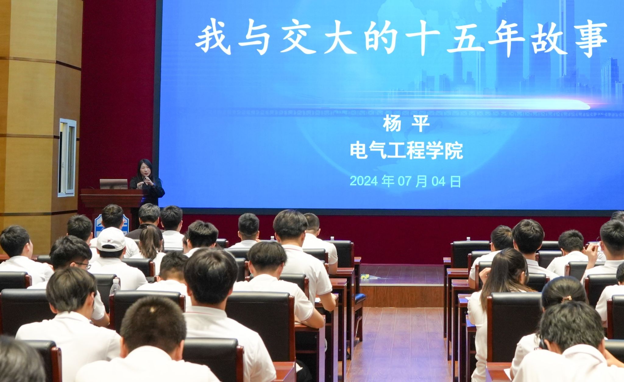 最后,教师代表杨平以“我与交大的十五年故事”为主题作报告。杨平教授分享了自己的求学历程、工作经验与学术研究经验,并建议同学们要勇于尝试,敢于探索,坚持努力。在报告的末尾,杨平教授欢迎在场同学能进入伟德体育深造,扎根交大,圆梦交大。