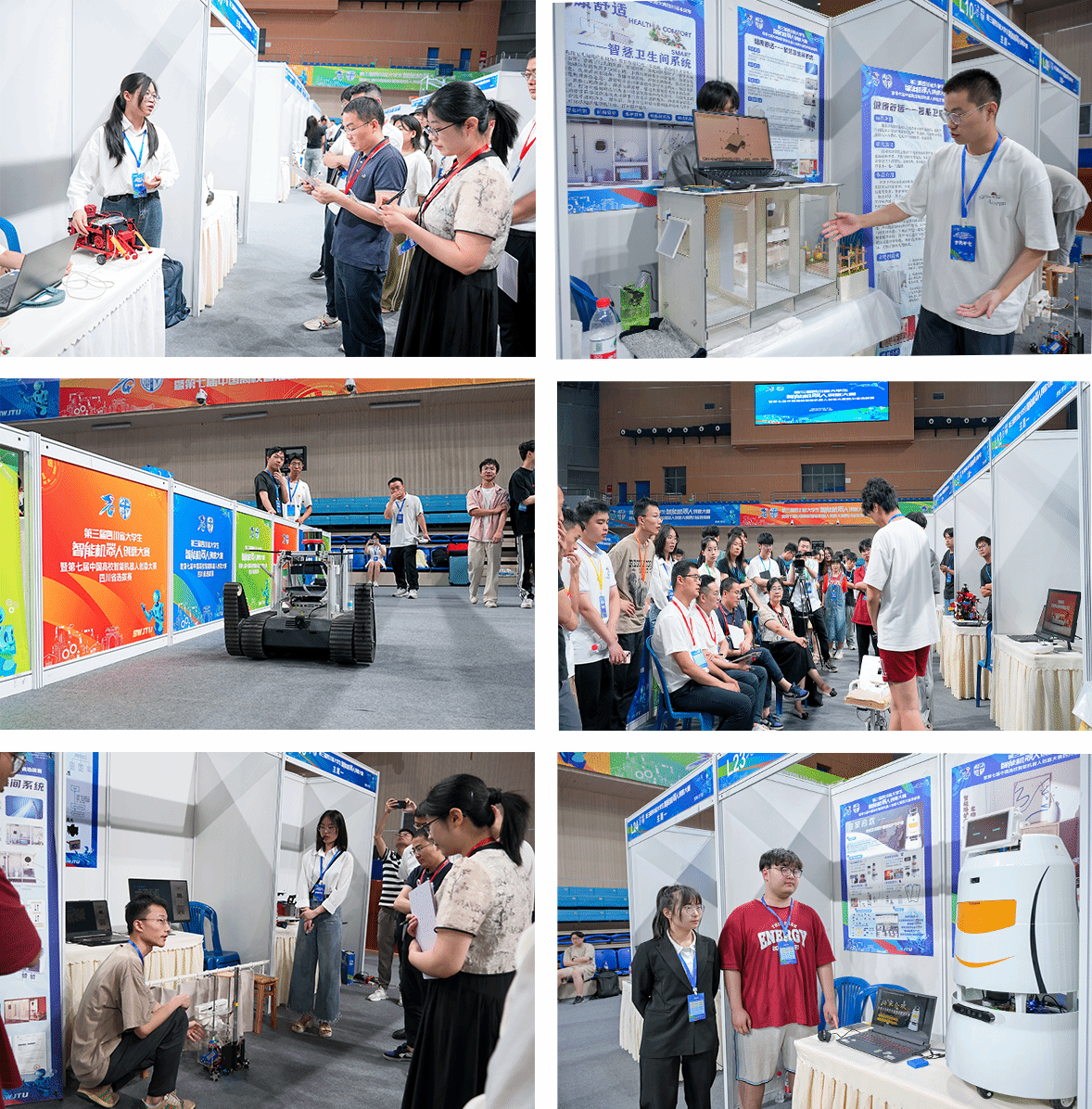 参赛作品有“智享收纳”智能家庭清洁机器人、古蕴新传-智能熏香机器人、基于RNN深度学习的智能家庭早餐管家、花间鱼影-花鱼共养智能生态管家、智能全方位自动化消杀机器人卫士、川渝宣传兵-智能腌制机……各参赛队伍精心布置展位,细致设计海报,通过视频等方式直观展示作品亮点,全方位展示参赛者的创新思维与动手能力,共同绘制了未来智能生活的美好图景。
