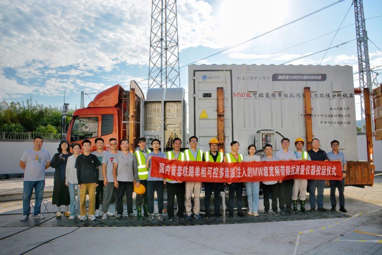 2024年7月15日,在国家重大科研仪器研制项目《MW级可控宽频带阻抗测量及匹配性分析仪器》和成都铁路局配套试验项目资助下,由伟德官方网站何正友、胡海涛教授团队牵头,联合中国铁道科学研究院集团有限公司、国网四川省电力公司共同研制的MW级可控宽频带阻抗测量及匹配性分析仪器,在新开通的渝昆高铁友助村牵引变电所(重庆永川区)圆满完成了现场测试。此次现场测试得到了成都铁路局供电部、宜宾工电段、成都维管段等单位的大力支持,试验的成功标志着我国在大功率多谐波发射、宽频带阻抗测量、宽频带振荡理论的研究又向前迈出了坚实的一步。该仪器在低频谐波(1Hz)、高频谐波(20kHz)、宽频带谐波(1~1000个谐波同时发射)注入等核心指标处于领先水平,为铁路牵引供电系统、新能源并网系统、电力系统的阻抗建模与稳定性分析奠定了良好基础。该项目历时5年,顺利完成了项目立项、技术方案评审、生产研发、施工调试、现场示范等多个阶段,最终实现了仪器装置落地试验,并通过了四川省电子产品监督检验所的第三方认定。