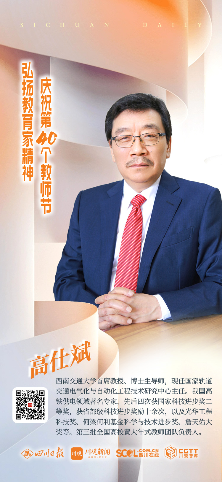 在电气化行业,高仕斌是公认的“领路人”。30多年来,他始终扎根科研和教学一线,专注于国家轨道交通供电领域科技创新和人才培养,突破多项技术难关,坚持科研育人、课程育人,为我国轨道交通电气化事业发展作出了突出贡献,为国家建设培养了大量优秀人才。