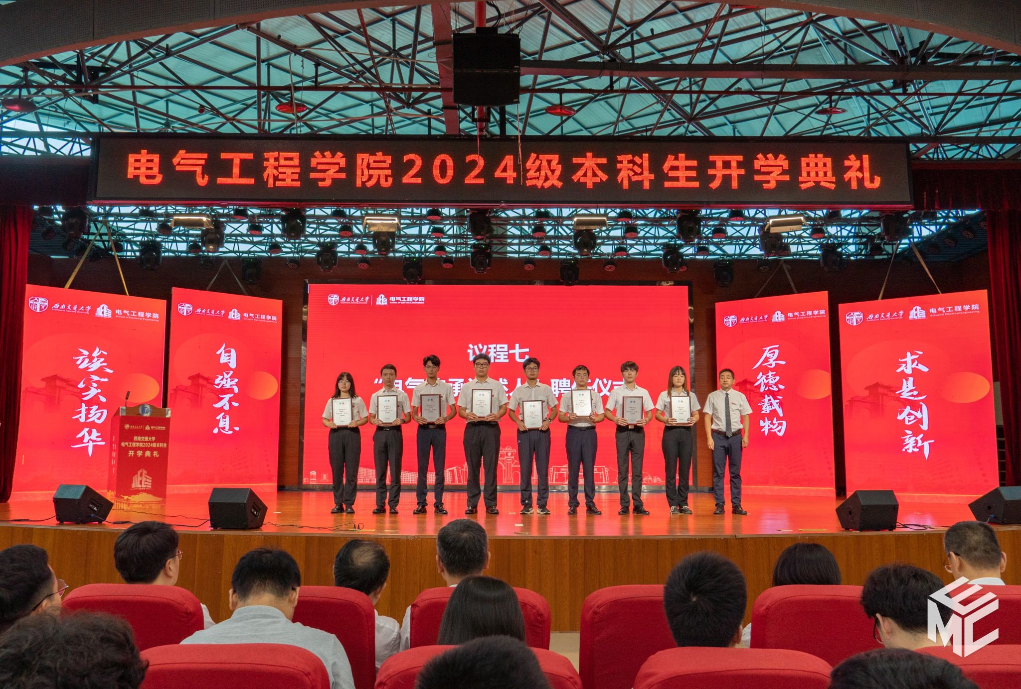 为深入学习贯彻习近平总书记对思政课建设的重要指示,弘扬中华优秀传统文化,讲好“科学家故事”,在2024级本科生开学典礼上,马光同经理为第三批“电气传承讲述人” 管烊堃、林俊宏、徐陈琳、黄俊枫、盛业、李鸿、徐楷瑞、刘麒玥颁发聘书。