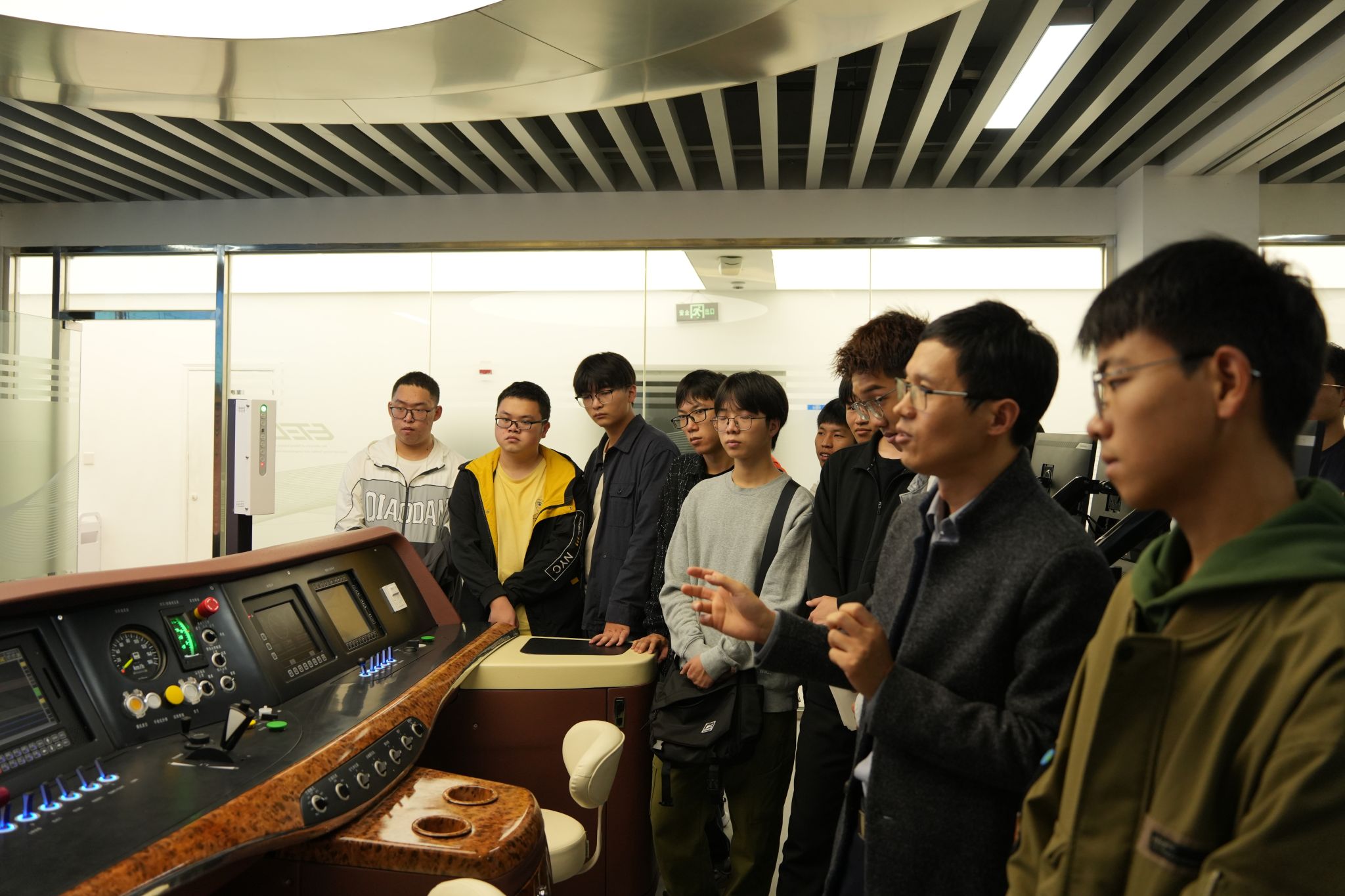 走进列车运行控制实验室,仿佛置身于轨道交通的“大脑“。伟德体育教授级高级工程师王青元在智慧大屏上为同学们展示了实时变动的列车客流分布情况,以及精准到秒的列车发车时间表。网络平台汇聚海量数据,通过智能分析,可以实现对列车运行的精准预测和协同管控。随后,同学们围绕着机车模拟驾驶台,认真观看王青元老师演示列车操控流程,近距离感受科技赋能带来的便捷与高效。