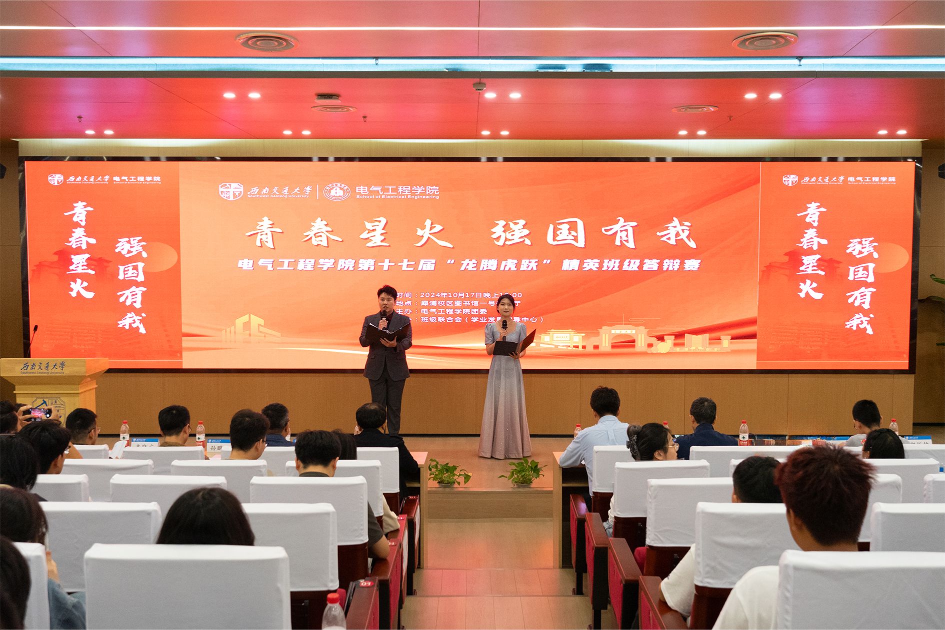 2024年10月17日晚上19时,由伟德体育团委主办,伟德体育班级联合会(学业发展指导中心)承办的伟德体育第十七届“龙腾虎跃”精英班级答辩赛于犀浦校区图书馆一号报告厅正式拉开序幕。公司党委副书记邢晓鹏、教学工作主管韩莹、团委书记张异、入围班级班导师以及各年级辅导员共同出席本次精英班级答辩赛。此外,公司本科2024级全体新生班委也来到答辩现场,向参加答辩赛的13个优秀班级学习经验。