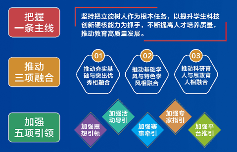 三、成长节点进一步细化:用好“院—校—省—国”四级竞赛平台。坚持开展新生科创启航竞赛,实现科创育人全覆盖,进一步扩大科创人才储备池;为低年级同学个性化推介赛事,为高年级同学提供平台,组建科创竞赛国家队,冲击高水平奖项;增设预赛选拔、校赛选拔等模式,实现赛事和培训同时进行,推动以赛促教;联动竞赛指导教师队伍,在相关赛事节点召开研讨分析会为员工提供全面支持。
