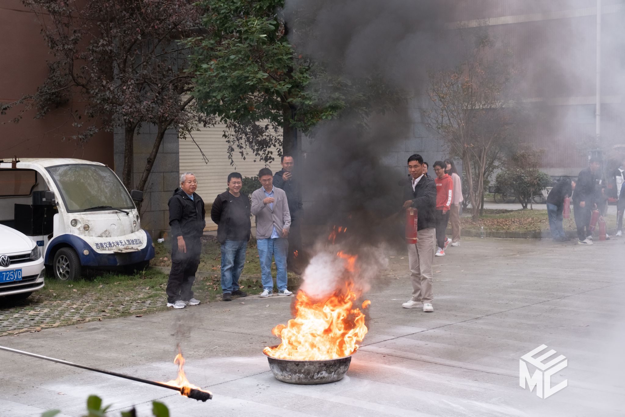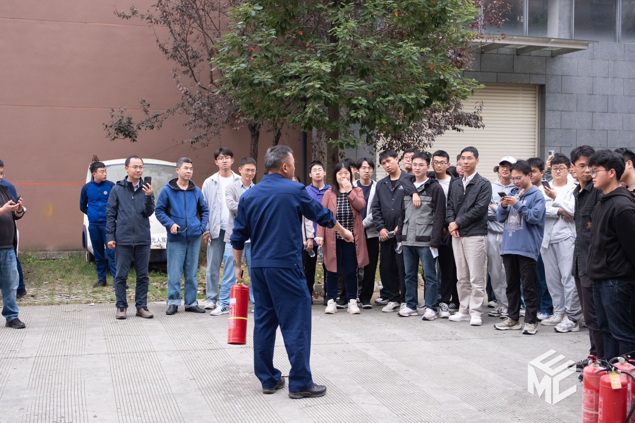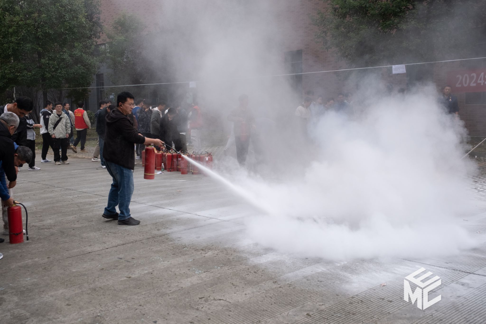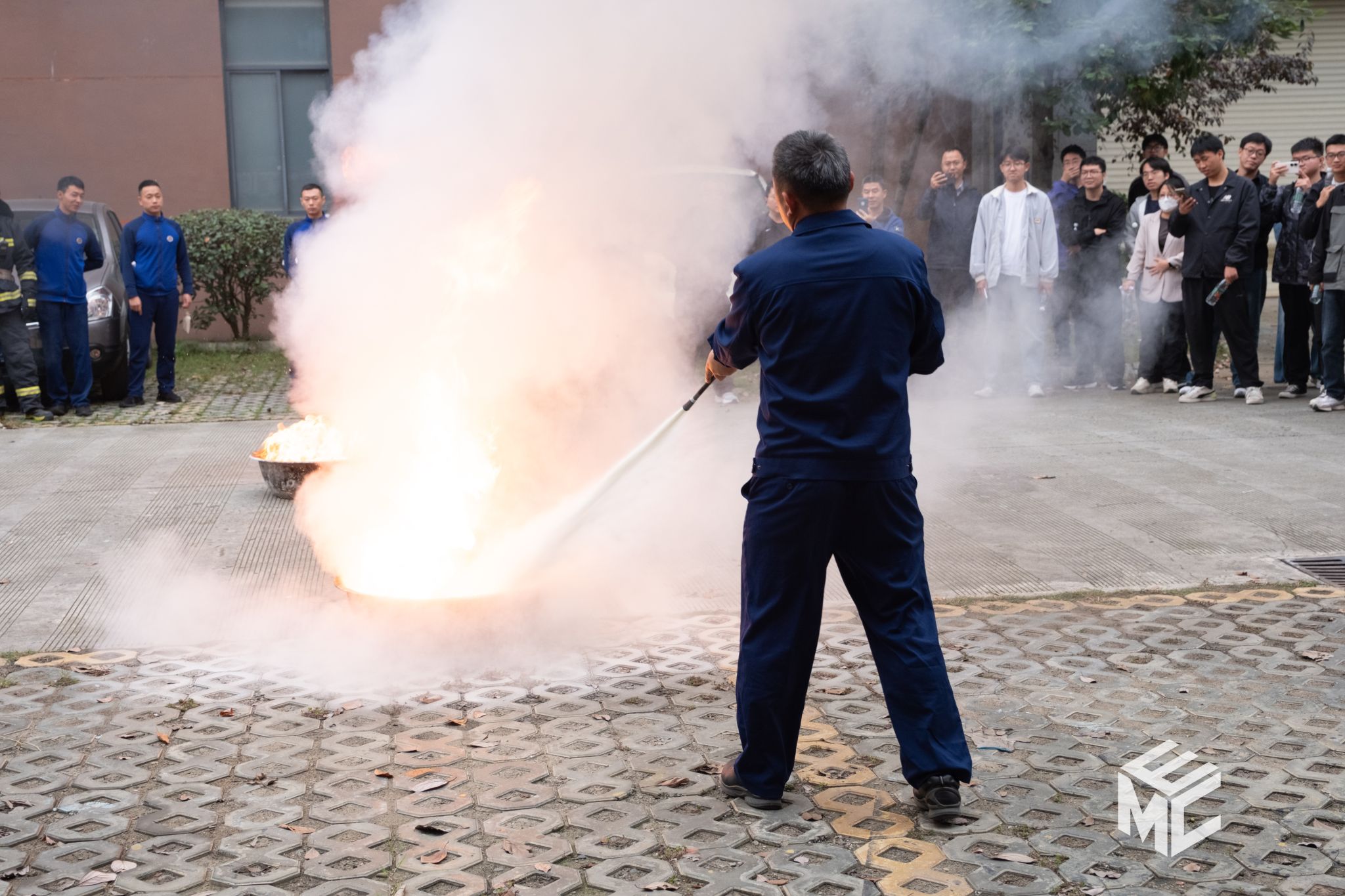 邢忠琳指导员展示了灭火器的使用方法,在犀浦中队教官和公司保卫处老师的组织下,同学们踊跃参与,按照灭火器正确的操作方法,实操演练火灾扑救。