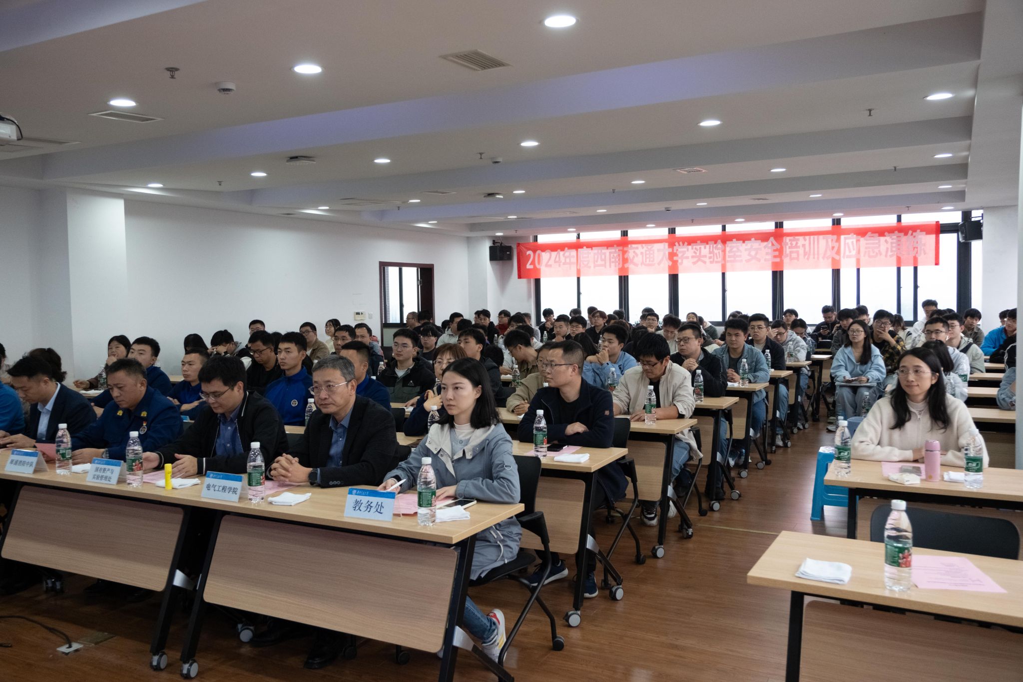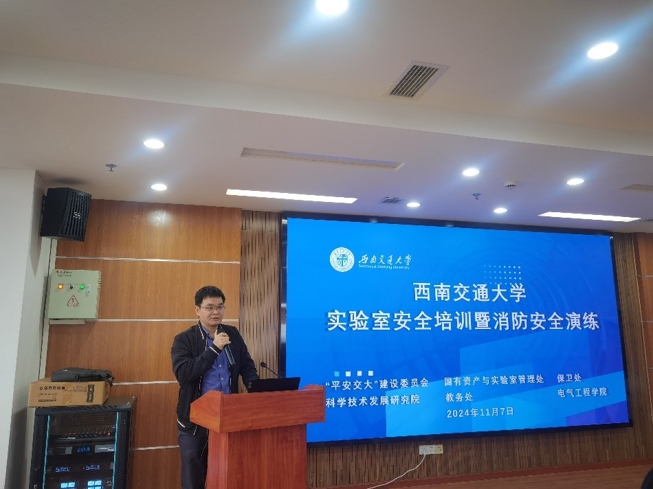 在第33个全国消防日来临之际,为进一步增强师生的实验室安全意识和应急处置能力,构建平安校园,11月7日下午,由董事长办公室、国有资产与实验室管理处、保卫处、科学技术发展研究院、教务处联合主办,伟德体育承办的实验室安全培训暨应急演练活动在犀浦校区电气馆举行。