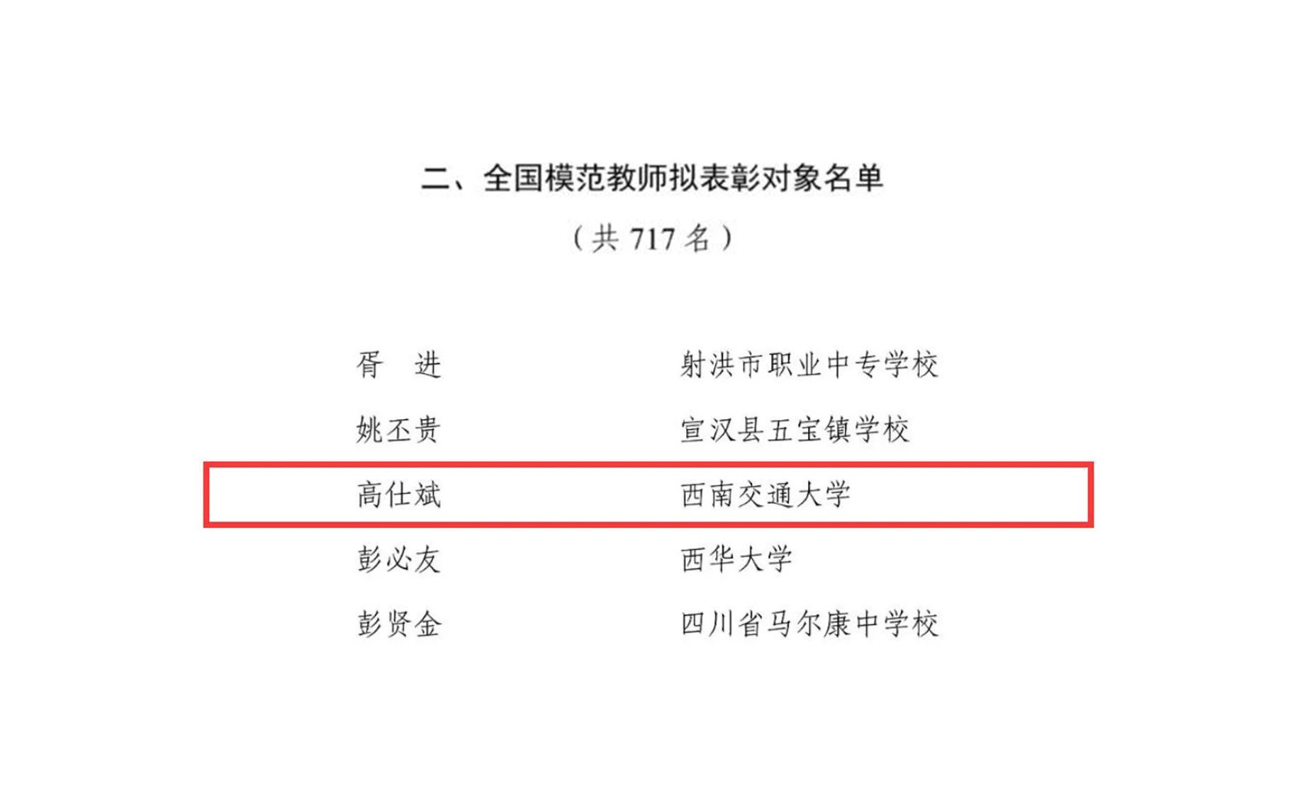 2023年,高仕斌教授领衔的“智能牵引供电教研团队”入选第三批“全国高校黄大年式教师团队”