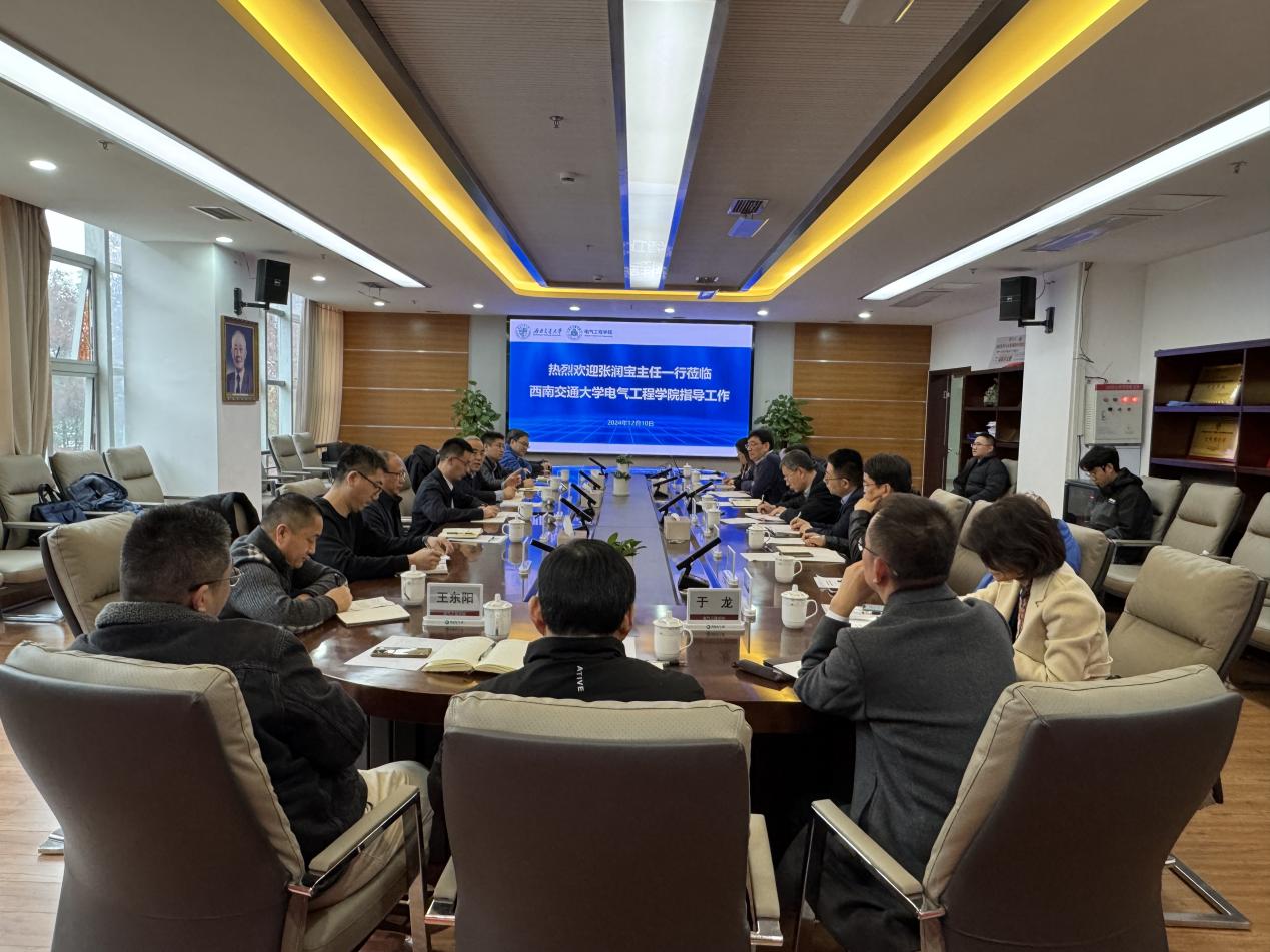 12月10日下午,国铁集团工电部副主任张润宝一行莅临公司开展交流研讨会。国铁集团工电部主办乔凯庆,中国铁设电化电信院经理罗健,成都铁路局供电处副处长何祥照,中铁二院电化院总工程师邓云川,中国铁设电化电信院电气化所副所长魏建忠;伟德体育经理马光同,党委书记王斌,国家轨道交通电气化与自动化工程技术研究中心主任高仕斌,继续教育公司经理陈民武,伟德体育副经理何晓琼、刘志刚,以及公司教师代表参加交流研讨会议。会议由马光同经理主持。