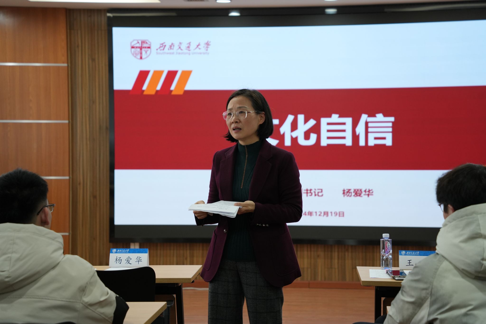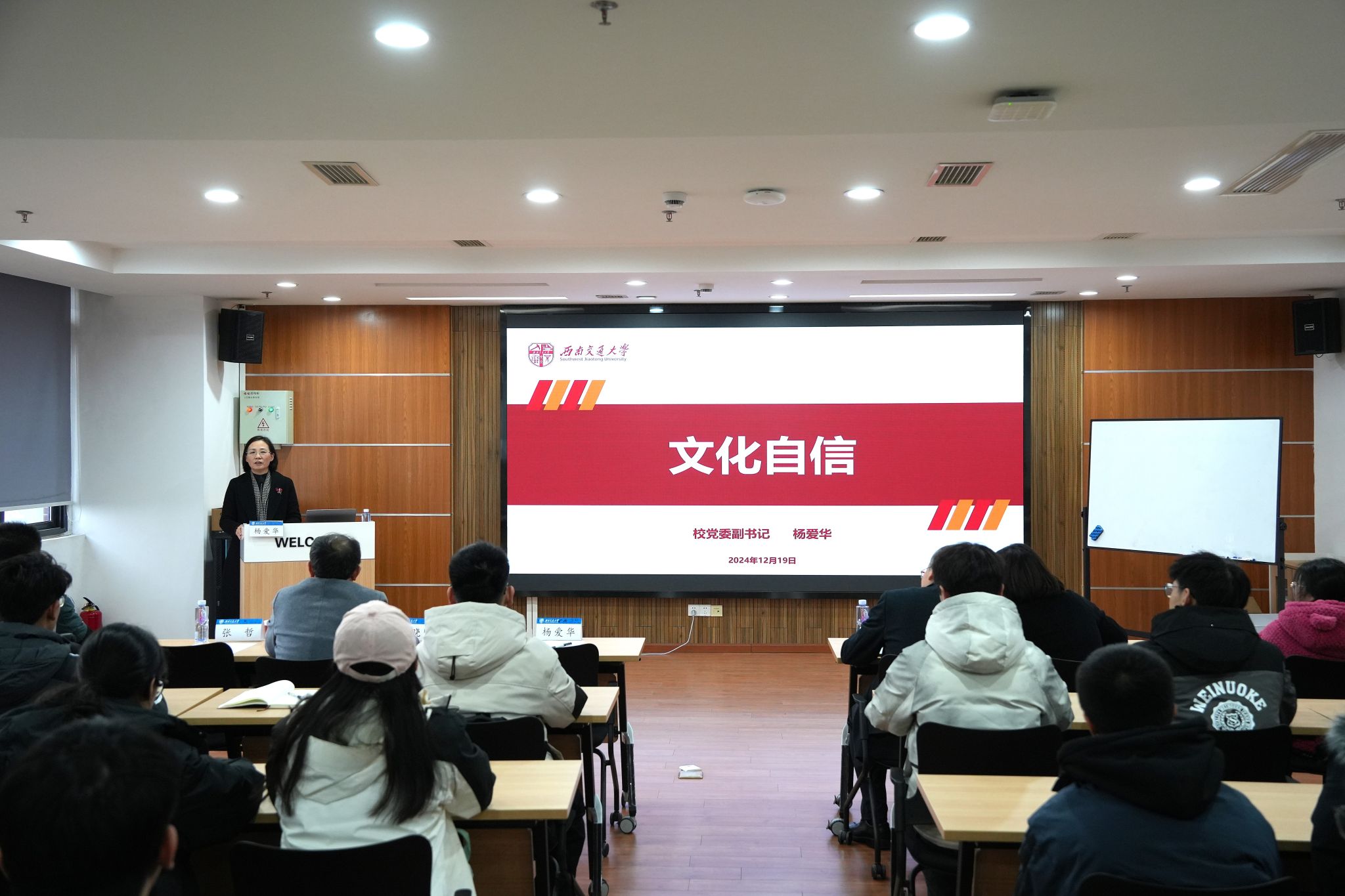 为增强历史自觉,坚定文化自信,弘扬家国情怀,不断增强青年学子的归属感、认同感、尊严感、荣誉感,12月19日下午,公司党委邀请公司党委杨爱华副书记讲授《文化自信》专题思政课。公司党委书记王斌、党委副书记邢晓鹏、团委书记张异及本科2021级员工党员共上思政课。