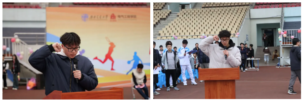 王斌书记向筹办本次运动会的老师和同学表示感谢,鼓励同学们以饱满的热情、昂扬的斗志融入比赛,做青春阳光的电气少年,也希望同学们将运动场上坚韧不拔的毅力、昂扬向上的精神投入到今后的学习和生活中去,努力学习、积极进取,为实现中国梦贡献自己的青春力量。