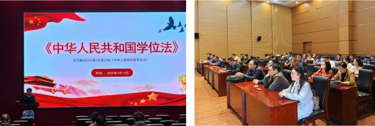 会议聚焦新修订的《学位法》,系统对比新旧版本变化,重点强调学术学位与专业学位分类培养的法律要求。刘志刚副经理指出,新法首次以立法形式明确两类学位的差异化定位:学术学位突出学术研究能力,专业学位突出专业实践能力;学术学位硕士申请人应当具有从事学术研究工作的能力,专业学位硕士申请人应当具有承担专业实践工作的能力。针对质量保障,新法要求建立学位授予全过程监督机制,对学术不端行为“零容忍”,明确导师在招生、培养等环节的主体责任。